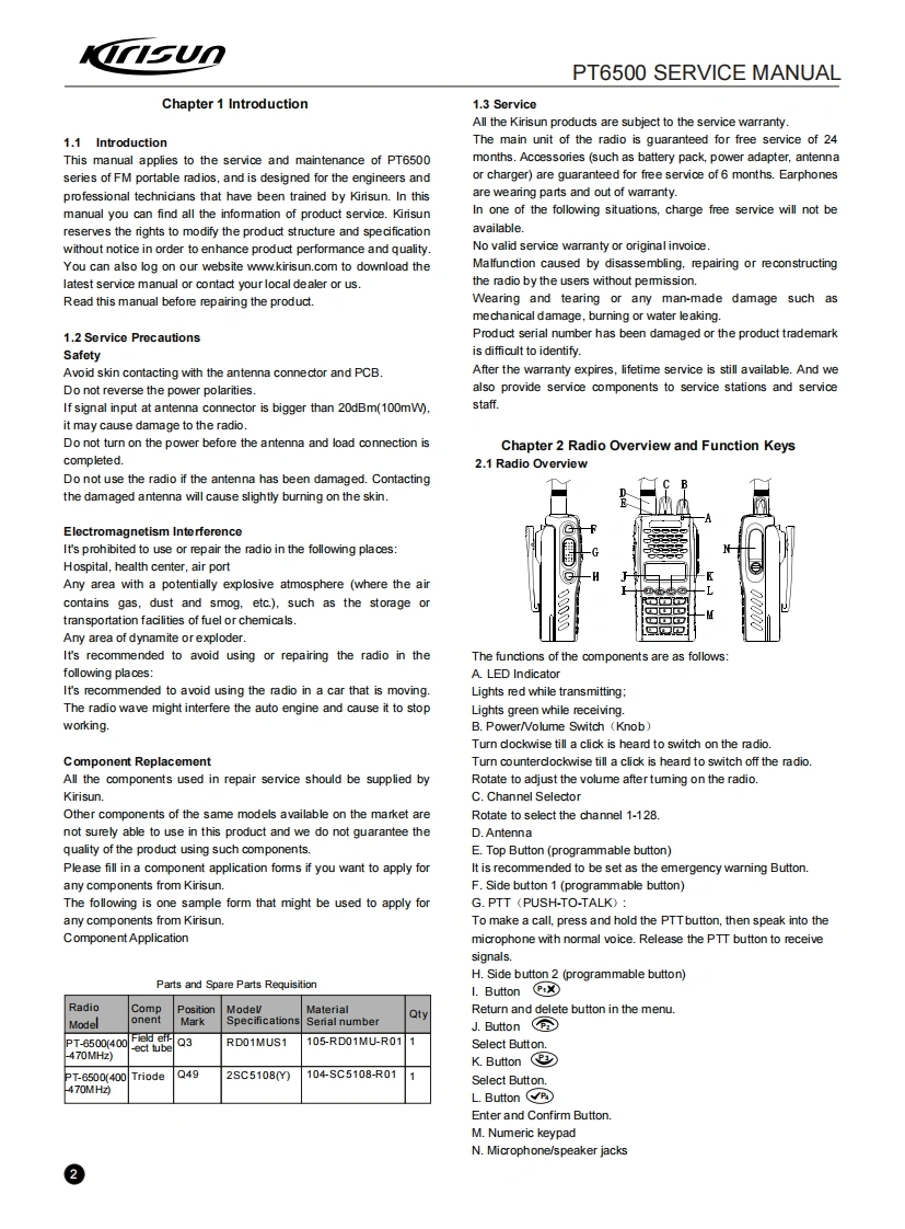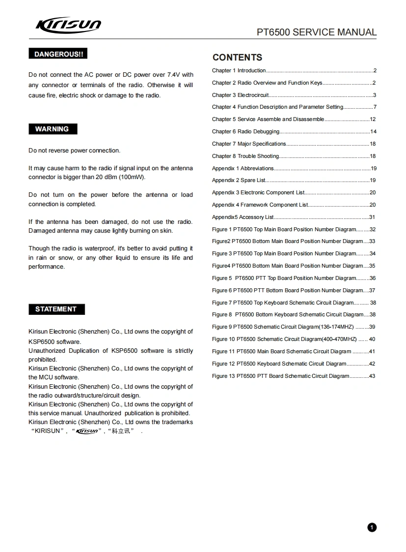 科立讯PT6500-Service-Manual维修手册含电器原理图找手册网16天前发布关注私信37.52MB44页030科立讯PT6500-Service-Manual维修手册含电器原理图此内容为付费资源,请付费后查看¥19¥21黄金会员免费钻石会员免费登录购买付费资源 第1页 / 共44页 第2页 / 共44页 第3页 / 共44页 第4页 / 共44页 第5页 / 共44页 第6页 / 共44页 第7页 / 共44页 第8页 / 共44页 第9页 / 共44页 第10页 / 共44页 试读已结束,还剩34页,您可下载完整版后进行离线阅读 THE END科立讯 文本预览 KrsUnPROFESSIONALTWO-WAY RADIOPT6500FM PORTABLE RADIOSERVICE MANUALKirisunTl纸器P□99Z间Welcome23690V071208KIRISUN ELECTRONICS (SHENZHEN)CO.,LTD 查看更多 收起部分 喜欢就支持一下吧收藏