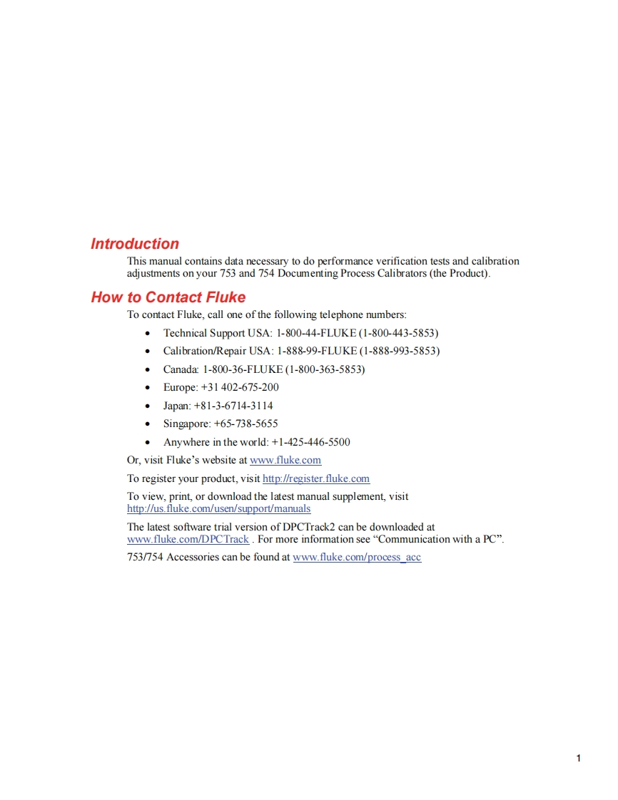 FLUKE753/754Documenting Process CalibratorCalibration ManuaNovember 20112011 Fluke Corporation.All rights reserved.Printed in USA.Specifications are subject to change without notice.All product names are trademarks of their respective companies.