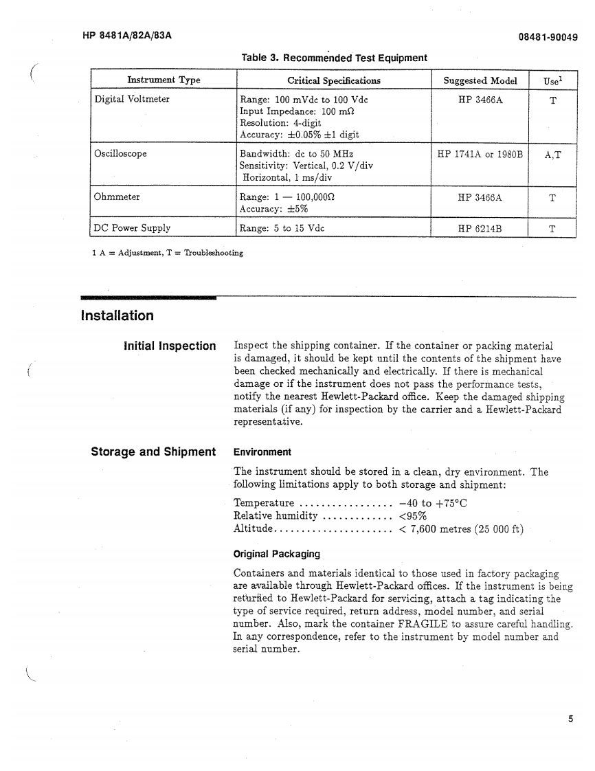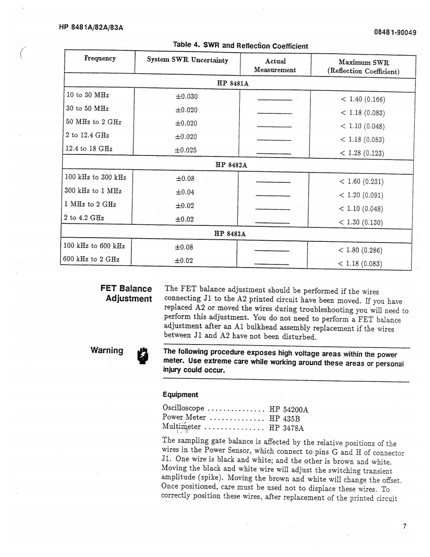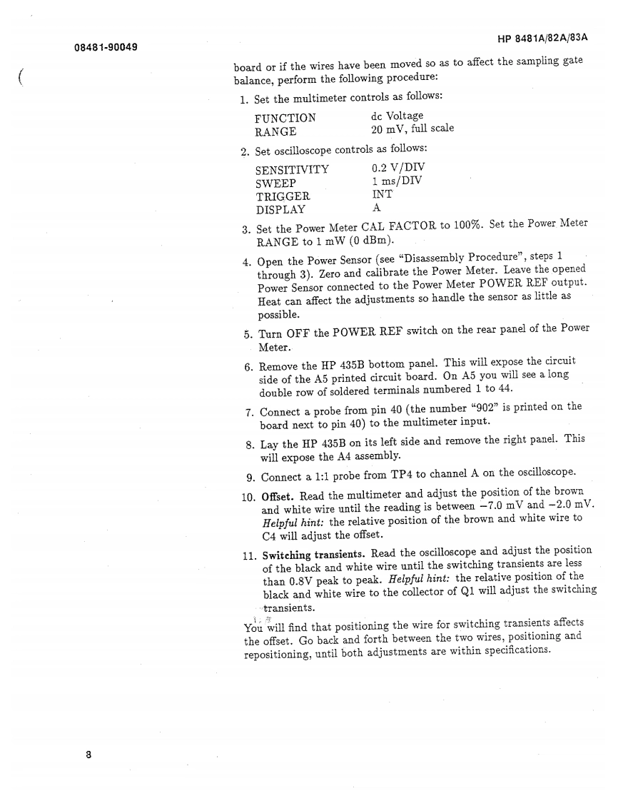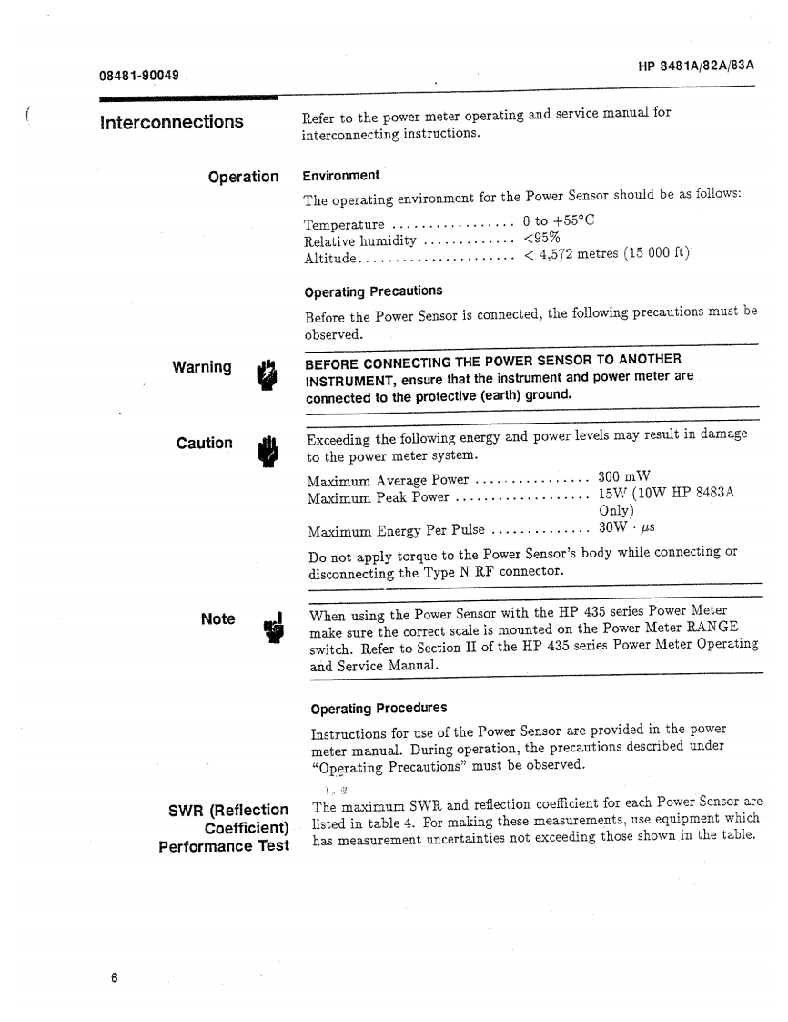 OPERATING AND SERVICE MANUALHP 8481AHP8482AHP 8483APOWER SENSORSERIAL NUMBERSThis manual applies directly to instruments withserial numbers prefixed:HP8481A:2702AHP8482A:2652AHP8483A:2701AWith the changes described in the Appendix,thismanual also applies to instruments with serial num-bers prefixed:HP8481A:1550A,1926A,2237A,2349A,2552AHP8482A:1551A,1925A,2237A,2349A,2607AHP8483A:1602A,1925A,2243A,2329A,2351A,2405A,2623AFor additional important information about serialnumbers,see "Instruments Covered By Manual".HEWLETTPACKARDCCopyright HEWLETT-PACKARD COMPANY 1975,1979,1986,1990CONTROLLEDMANUAL PART NO.08481-90049DOCUMENT