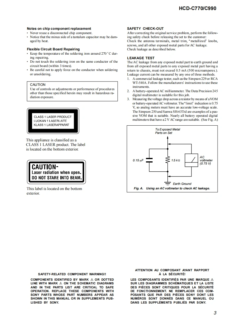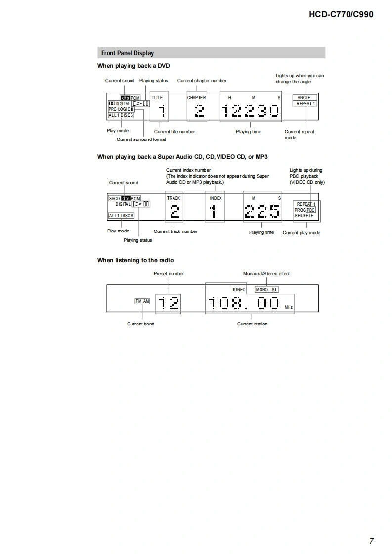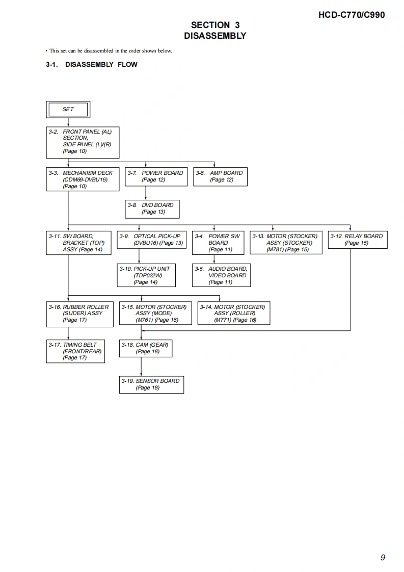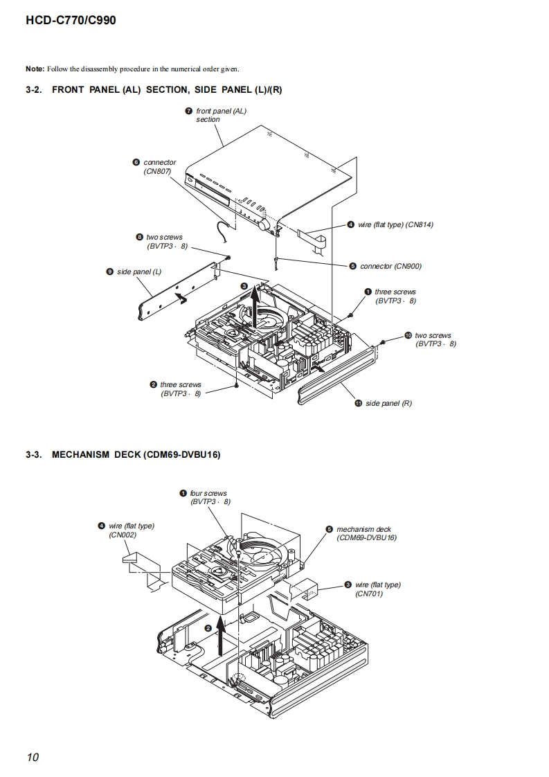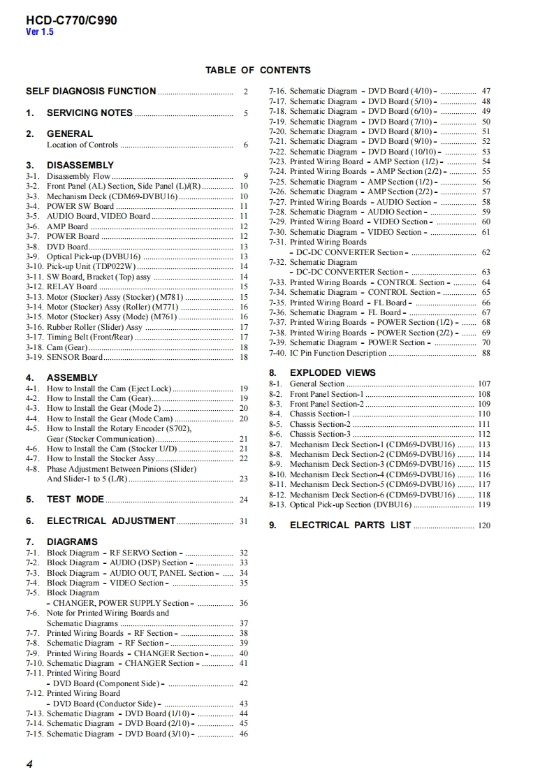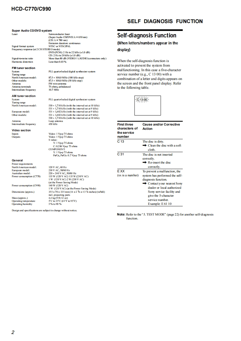 HCD-C770/C990SERVICE MANUALUS ModelCanadian ModelVer1.62004.09HCD-C770/C990Self DiagosisAEP ModelAustralian ModelHCD-C770。g060HCD-C770/C990 is the amplifier.DVD/CDPhoto:HCD-C770player and tuner section in DAV-C770/C990.Model Name Using Similar Mechanism NEWMechanism TypeCDM69-DVBU16Base Unit NameDVBU16Optical Traverse Unit NameDBU-1SPECIFICATIONSAUDIO POWER SPECIFICATONS (C770:US model)POWER OUTPUT AND TOTAL HARMONIC DISTORTION:,from 150-07 wats per channel minimum RMS powes,with no more than 1%城dharmonic distortion from250 mill iwatts的ed output..AUDIO POWER SPECIFICATIONS(C990:US model)POWER OUTPUT AND TOTAL HARMONIC DISTORTION:With 3ohm kuds,both channes driven,from 150-10,000 Hz raied75 watts per channel minimum RMS power,with no more than Itotal harmonic dis tortion fom 250 milliwatts to rated outputAmplifier section90W+90 W03ohms at IkHz THD 10%)100W+100W(3ah1k,THD10%Front:90 W+90 wCenter:90 WRear:90W+90 W(3 ohms IkHz THD 10 %Subwoofr:100 W G ohmsat 100 Hz THD 10%6)Surround mode(C990)Front:100 W+100 WCemer:100 WRexr*:100 W+100 W G ohms at I kHz THD 10%)Subwoofer:100 W(3ohms at 100 Hz THD 10%)年DXd限on the sou过万e过sd5d过kOw,罪y be no soud o啤证Inputs (Andlog)VIDEO 1,2:Sensitivity:150 mVInputs (Digital)VIDEO2 (optic):Sensitrvitv:.Outputs (Analg)VIDEO I (AUDIO OUT:Vohage:2VImpedanoe:I kikhmsPHONES:Accepts low.and high-impedance headphones-Continued on next page-SACD/DVD RECEIVER9-874-059-07Sony Corporation2004105-1Audio GroupSONY©2004.09Published by Sony Engineering Corporation
