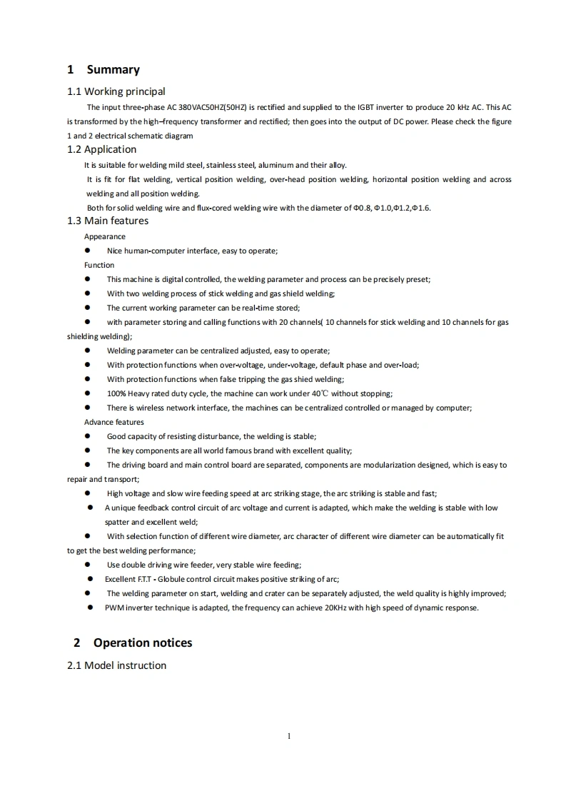 华远NB-350.500.630IGBT-Pro-MIG-Welding-Machine-Manual含电器原理图找手册网16天前发布关注私信2.64MB25页039华远NB-350.500.630IGBT-Pro-MIG-Welding-Machine-Manual含电器原理图此内容为付费资源,请付费后查看¥29¥31黄金会员免费钻石会员免费登录购买付费资源 第1页 / 共25页 第2页 / 共25页 第3页 / 共25页 第4页 / 共25页 第5页 / 共25页 第6页 / 共25页 第7页 / 共25页 第8页 / 共25页 试读已结束,还剩17页,您可下载完整版后进行离线阅读 THE END华远 文本预览 NB-350/500IGBT ProMIG/MAG/CO2 WELDING MACHINEMANUALINSTRUCTION(PLEASE READ CAREFELLY BEFORE OPERATION) 查看更多 收起部分 喜欢就支持一下吧收藏