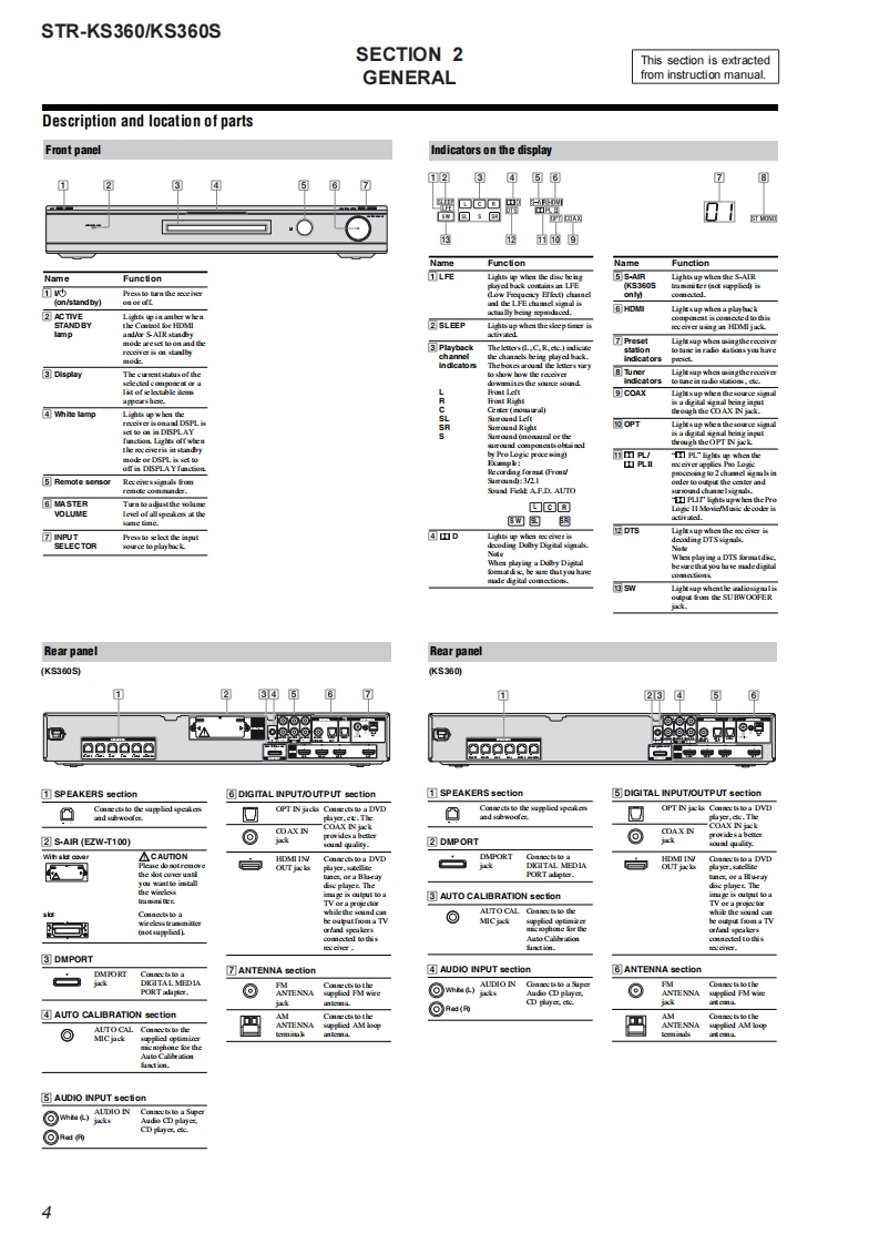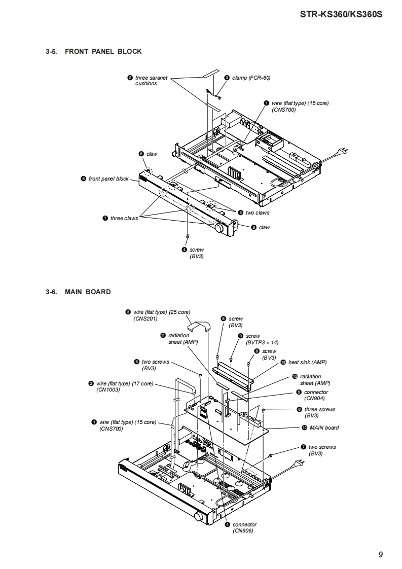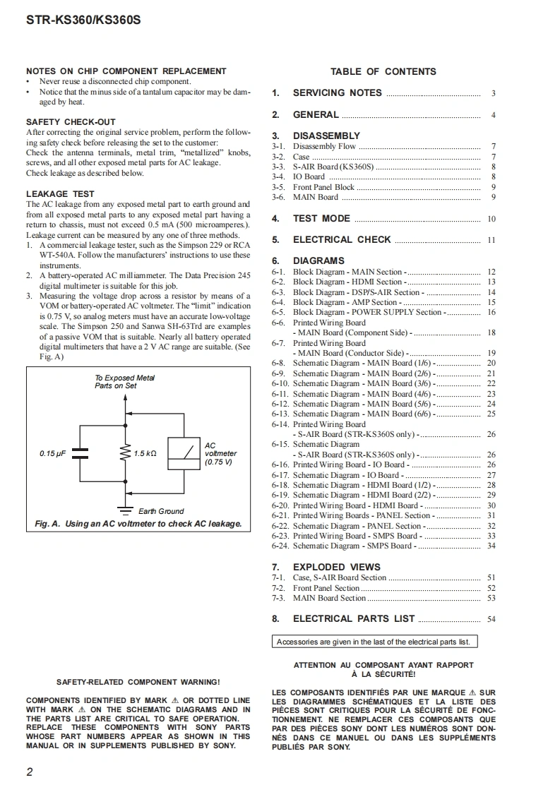 STR-KS360/KS360SSERVICE MANUALUS ModelCanadian ModelVer.1.02009.03STR-KS360/KS360SAEP ModelUK ModelAustralian ModelSTR-KS360SSONYPhoto:STR-KS360SSTR-KS360 is the receiver section in US,Canadian models of HT-SS360.STR-KS360S is the receiver section in HT-SF360 and AEP UK models of HT-SS360.SPECIFICATIONSPro Logic Surond and the D'TS DigitalS画ound Sys tem.AUDIO POWERLborgoies.Doby.Pro Logic.ad heGeneralSPECIFICATIONSdouble-D symbol are trademarks of DolbyArea codePower e quirementsArea codePowerrequirementsL直ora道ePOWER OUTPUT AND TOTALU.UC.CA120V AC,60HzMamafactaed under licene under U.S.HARMONIC DISTORTIONCEL.CEK2D¥50uU.UC.CAPata t's5451.94达5956674:5.974Models of area code U,UC only)AU20VAC50H业CEL.CEK23D-2DVAC.①④H业0597762:647535&oer US..AU170-20000rd84sp由2 OV AC.S0业z红eace power ou年ute岳mL6aa,wadminimam RMS power,with nomoue than 1DTs dDT3D白I Surrond arePower ourput (DIGITALMEDIA PORT)regisered trademarks and the DTS logos域d如moni:distortion fom20 ni lliwatsDCOUT:SV TORAMAXo rated ou年Aw位cuaeGod1996-2008 DTS.Ic.All Righes Reserved..C.CAAmlogSemsiiry:I V/SO koemoThis iverincorporHigh-DefinitionDigndl (Couxid)Impedince:75 olmsU.UC.CA.CHL-65WPower OutoutMakimedia In terface (HDMIn technologyCEK.AUHDMI.he HDMI kgo and High-Defini ionMemedhafrearetadnrt200①Hz THD隆)±0dB.05BpTegw买d trademads of HDMI Licensing28-2000DHzFM tuner sectionoas(w/)(AgTuning range375-1003M3wg¥3eAatesaa韩销a0■a430×665×3B3mm)Asteaatemisik75 chims,uabulnceddg厚重电Pr"BRAVIA"is atndemarks of SomySUR 143 W山装AEae)34k27上8心Corporion.sBw00F球:2s5WAM tuner sectionModek of area code CEL.CEK.AUArea codeTuning scaleAbout area codesD业年9k业年LUC,CAA而WRMS Output日CEK531-1602kH2(仔a%遥1比THDD强)FRONT:14 W4XXX-XXX-XAA-aaA的pgCENTER 143 W450HzsR24143WArua cedu(1.5 ohats70比a,differencesin年craa.0 adto由eEeTHD 10)心e.ae dlee与i thete是在estSUBWOOF:25 Wodel of re code AA mn”.MULTI CHANNEL AV RECEIVER9-889-446-01Sony Corporation2009C05-1Audio&Video Business Group©2009.03Published by Sony Techno Create CorporationSONY