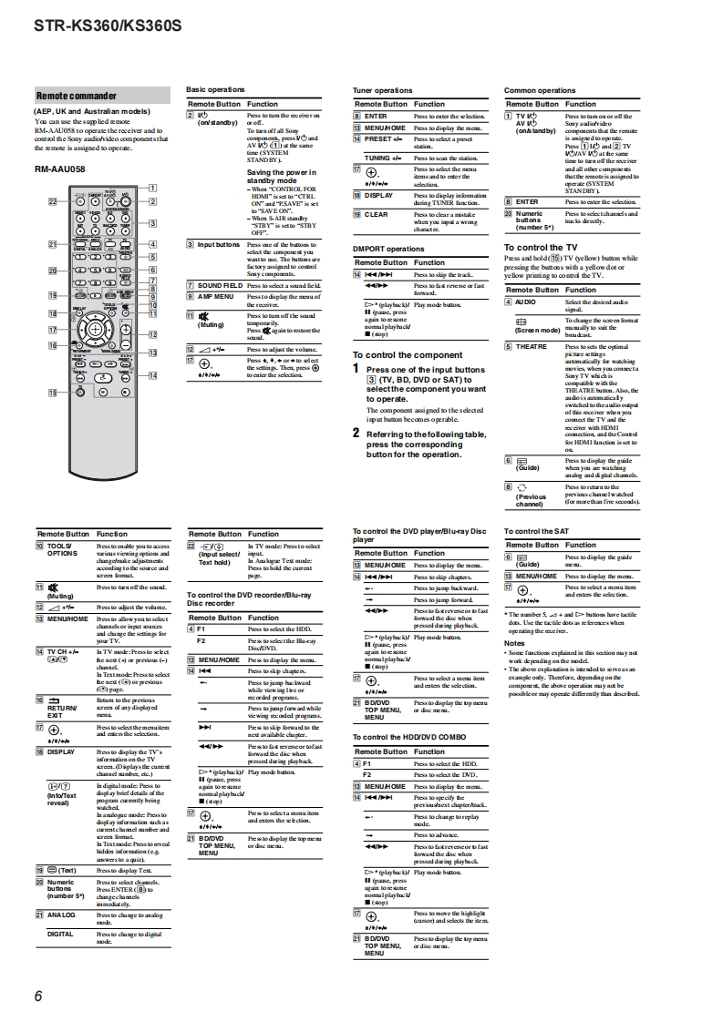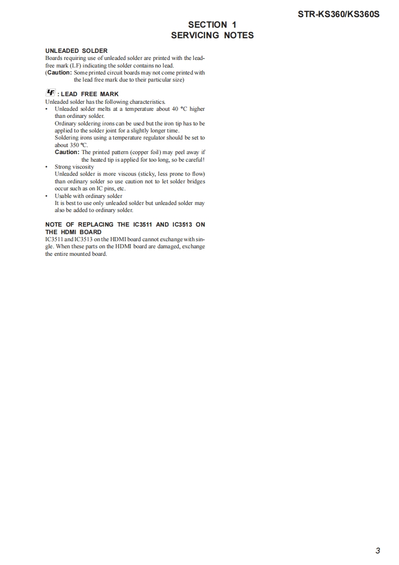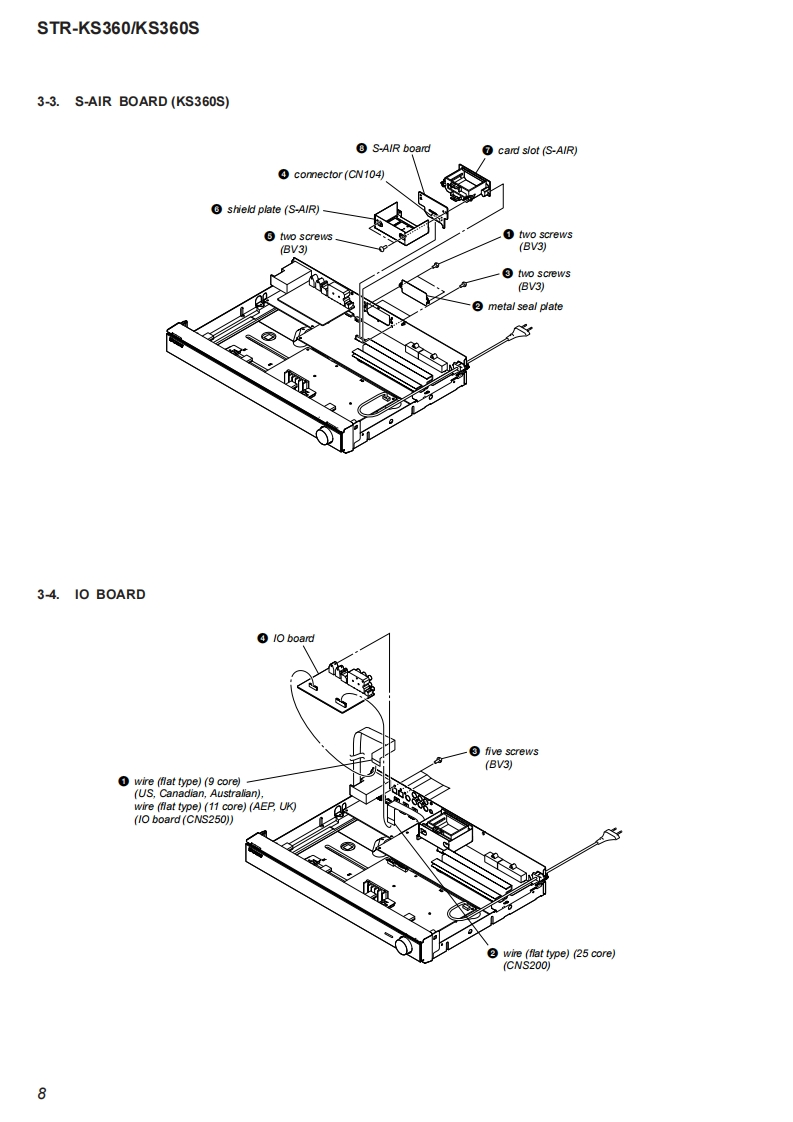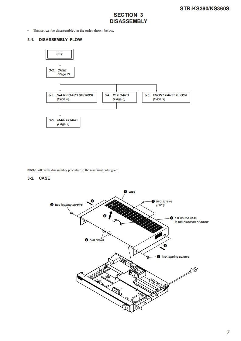 STR-KS360/KS360SSERVICE MANUALUS ModelCanadian ModelVer.1.02009.03STR-KS360/KS360SAEP ModelUK ModelAustralian ModelSTR-KS360SSONYPhoto:STR-KS360SSTR-KS360 is the receiver section in US,Canadian models of HT-SS360.STR-KS360S is the receiver section in HT-SF360 and AEP UK models of HT-SS360.SPECIFICATIONSPro Logic Surond and the D'TS DigitalS画ound Sys tem.AUDIO POWERLborgoies.Doby.Pro Logic.ad heGeneralSPECIFICATIONSdouble-D symbol are trademarks of DolbyArea codePower e quirementsArea codePowerrequirementsL直ora道ePOWER OUTPUT AND TOTALU.UC.CA120V AC,60HzMamafactaed under licene under U.S.HARMONIC DISTORTIONCEL.CEK2D¥50uU.UC.CAPata t's5451.94达5956674:5.974Models of area code U,UC only)AU20VAC50H业CEL.CEK23D-2DVAC.①④H业0597762:647535&oer US..AU170-20000rd84sp由2 OV AC.S0业z红eace power ou年ute岳mL6aa,wadminimam RMS power,with nomoue than 1DTs dDT3D白I Surrond arePower ourput (DIGITALMEDIA PORT)regisered trademarks and the DTS logos域d如moni:distortion fom20 ni lliwatsDCOUT:SV TORAMAXo rated ou年Aw位cuaeGod1996-2008 DTS.Ic.All Righes Reserved..C.CAAmlogSemsiiry:I V/SO koemoThis iverincorporHigh-DefinitionDigndl (Couxid)Impedince:75 olmsU.UC.CA.CHL-65WPower OutoutMakimedia In terface (HDMIn technologyCEK.AUHDMI.he HDMI kgo and High-Defini ionMemedhafrearetadnrt200①Hz THD隆)±0dB.05BpTegw买d trademads of HDMI Licensing28-2000DHzFM tuner sectionoas(w/)(AgTuning range375-1003M3wg¥3eAatesaa韩销a0■a430×665×3B3mm)Asteaatemisik75 chims,uabulnceddg厚重电Pr"BRAVIA"is atndemarks of SomySUR 143 W山装AEae)34k27上8心Corporion.sBw00F球:2s5WAM tuner sectionModek of area code CEL.CEK.AUArea codeTuning scaleAbout area codesD业年9k业年LUC,CAA而WRMS Output日CEK531-1602kH2(仔a%遥1比THDD强)FRONT:14 W4XXX-XXX-XAA-aaA的pgCENTER 143 W450HzsR24143WArua cedu(1.5 ohats70比a,differencesin年craa.0 adto由eEeTHD 10)心e.ae dlee与i thete是在estSUBWOOF:25 Wodel of re code AA mn”.MULTI CHANNEL AV RECEIVER9-889-446-01Sony Corporation2009C05-1Audio&Video Business Group©2009.03Published by Sony Techno Create CorporationSONY