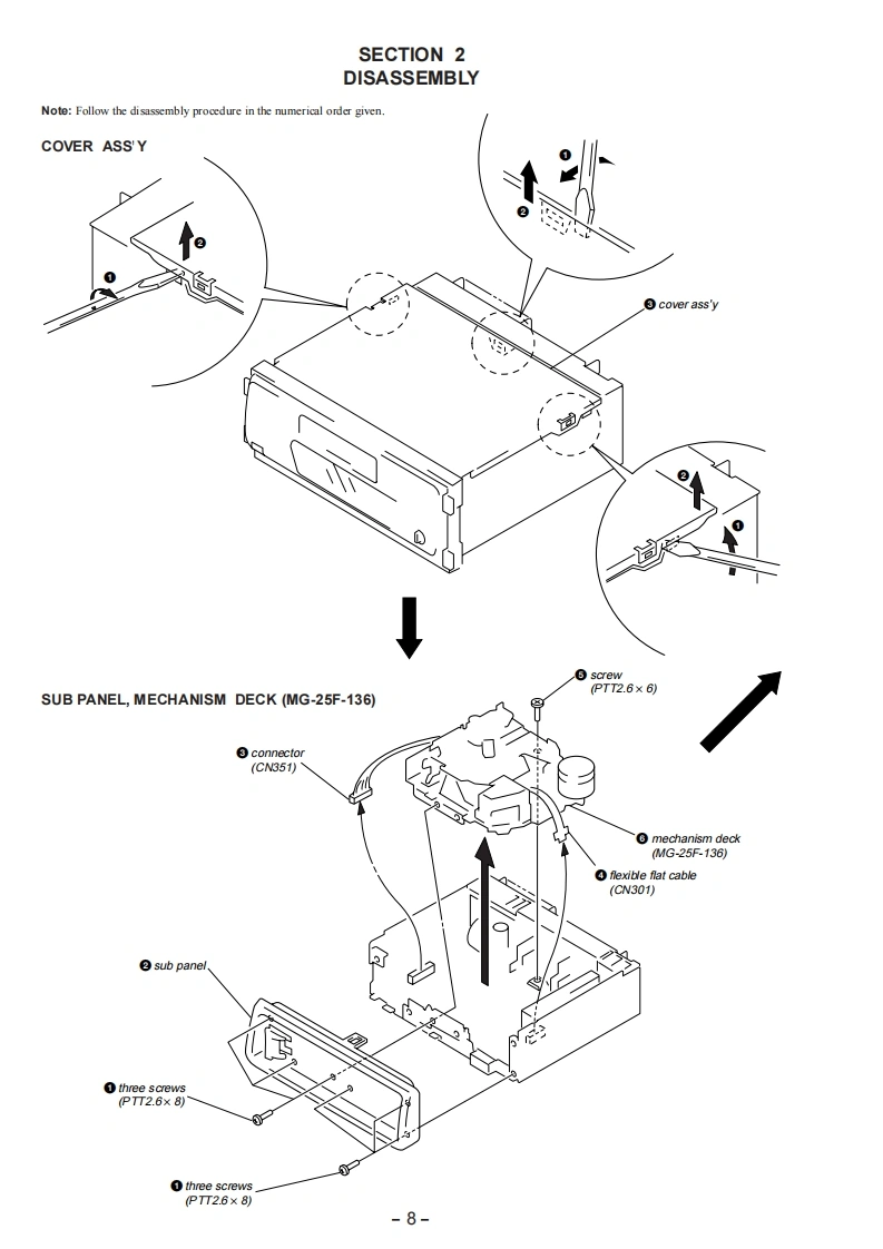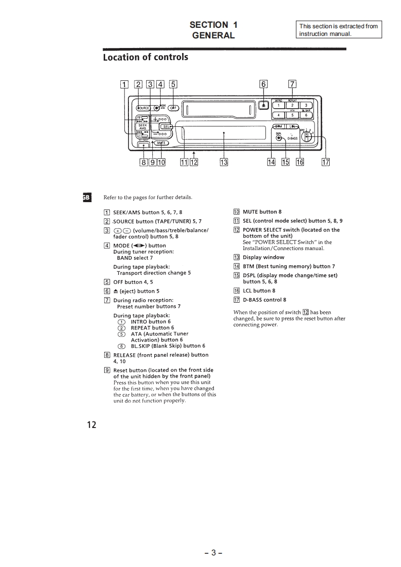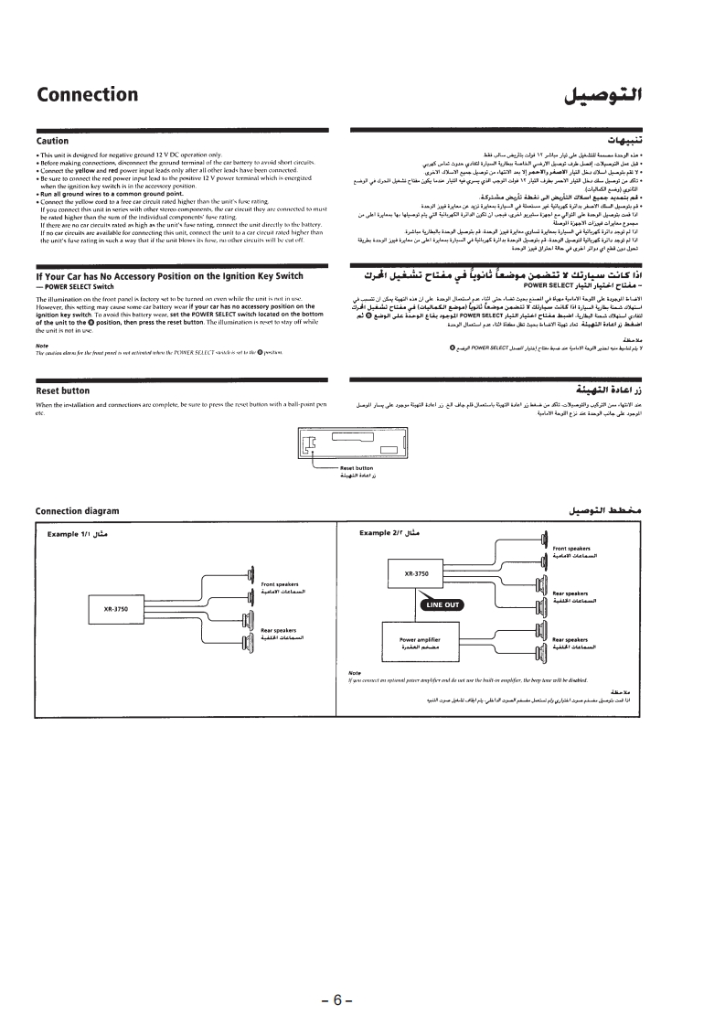 XR-3750SERVICE MANUALSaudi Arabia ModelModel Name Using Similar MechanismXR-4800Tape Transport Mechanism TypeMG-25F.136SPECIFICATIONSCassette player sectionGeneralTape track4-track 2-channel stereoOutputsPower antenna controlWow and flutter0.08%WRMS)lead/Power amplifierFrequency response30-18,000Hzcontrol lead/TeiephoneSignal-to-noise ratio58 dBmute control leadRear line out1】Tuner sectionTone controlsBa55±8dBat100HzFMTreble±8dBat10kHz875-108.0MHzPower requirements12 V DC car batteryTuning rangeAntenna terminalExternal antenna connector(negative ground)DimensionsApprox.188×58×182Intermediate frequency10.7 MHzmm (w/h/d)Usable sensitivity9 dBfSelectivitv75 dB at 400 kHzMounting dimensionsAPpr0x.18253×164mmw/h/d》Signal-to-noise ratio65 dB (stereo).Mass68 dB (mono)Supplied accessoriesAi on andHarmonic distortion at kHz0.7%3 tereo】connections (1 set)0.4%(mono】Front panel case (1)Separation35 dB at 1 kHzFrequency response30-15,000HzDesign and specifientions are subject to chonge toithoutMWnotice.Tuning range531-1.602kHzAntenna terminalExternal antenna connectorIntermediate frequency10.71MHz/450kHzSensitivity30 uVSTuning rangeSW tuning interval:SW1:2.940-7.735kHzSW2:9.500-18.135kHz(except for 10,140-11575kHz)Antenna terminaExternal antenna connectoIntermediate frequency10.71MH2/450kHzSensitivity30 uVPower amplifier sectionOutputsSpeaker outputs(sure seal connectors)Spcaker impedance4-8 ohmsFM/MW/SW CASSETTE CAR STEREOMaximum power output 35 W x 4 (at 4 ohms)■MICROFILMSONY