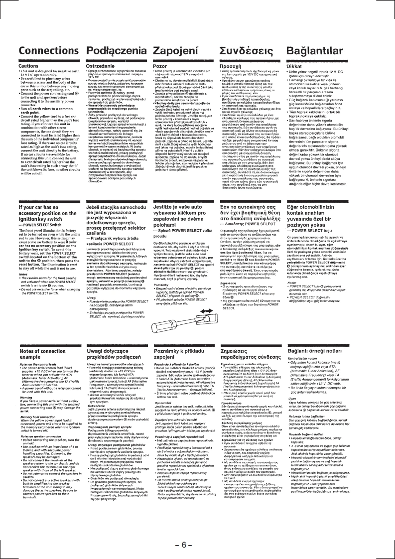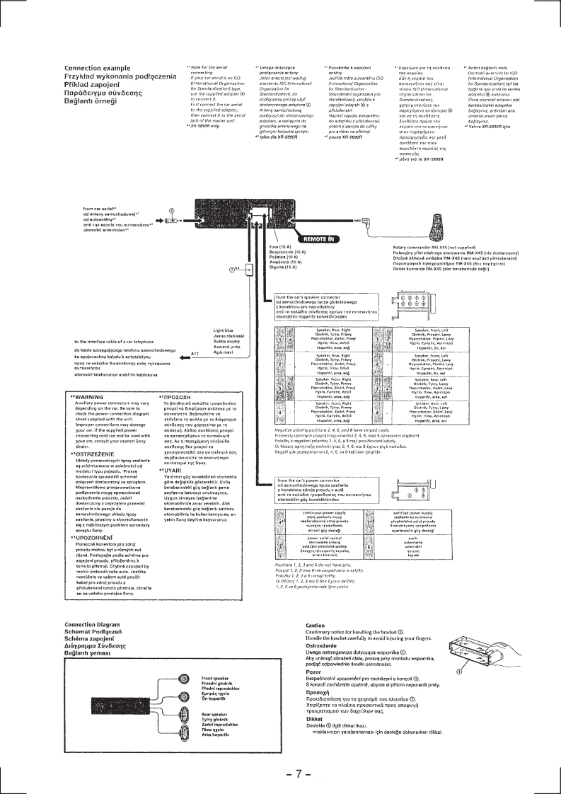 XR-5880R/5890RSERVICE MANUALAEP ModelUK ModelPhoto:XR-5890RModel Name Using Similar MechanismXR-C6100RTape Transport Mechanism TypeMG-25G-136SPECIFICATIONSCassette player sectionPower amplifier section4-track 2-channet stereoOutputsSpeaker outputs0.06%WRMS)(sure seal connectors)Frequency response30-18.000Hz4-BohmsSignal-to-noise ratio35w×4(at4chmsCassette typeTYPE II,IV61 dBGeneralTYPEI58dBOutputsPower aerial relay controlleadTelephone ATT controlTuner section标ead(XR-5890R/4890 only)Tone controlsBa55±8dBat100HzFMTreble +8 dB at 10 kHizTuning range87.5-10g.0MHzPower requirements12 V DC car batteryAeral terrninalExtemal aerial connector(negative earth)Intermediate frequency10.7HzDimensionsAppr0x,165×58×181mmUsable sensitivity9 dBf(w/h/d)Selectivity75 dB at 400 kHzMounting dimensionsApprox,.182×53×164mumSignal-to-noise ratio65 dB(stereo),(w/h/d)68 dB (mono)MassHarmonic distortion at 1 kHzSupplied accessories0.7'%(stereo).connections(1 set)0.4%(mono)Front panel case (1)Separation35 dB at 1 kHzOptional accessoriesRotary commanderFrequency response30-15.000HzM-X45MW/LWTuning rangeMW:531-1602kHzDesign and specifications are subject to changeLW:153-281kHzwithout noticeAerial terminalIntermediate frequency10.7 MHz/450 kHzSensitivityMW:30 uVLW:50 uVFM/MW/LW CASSETTE CAR STEREO■■MICROFILMSONY