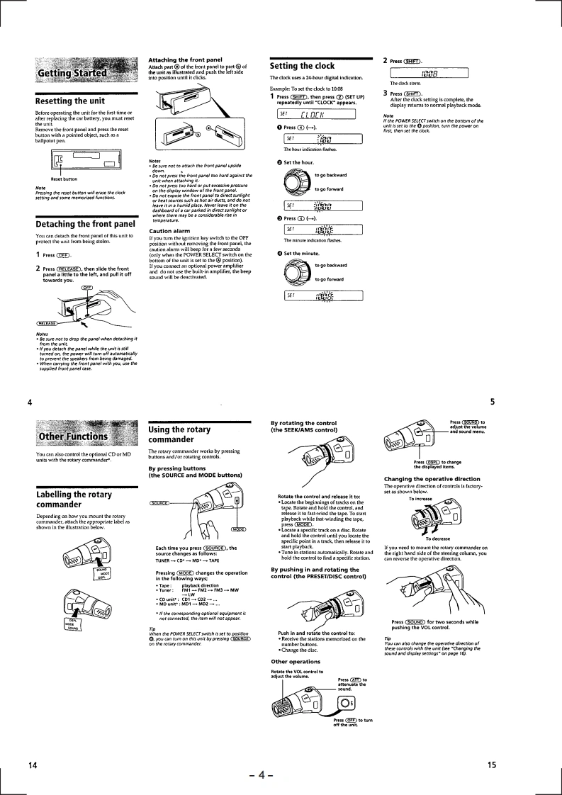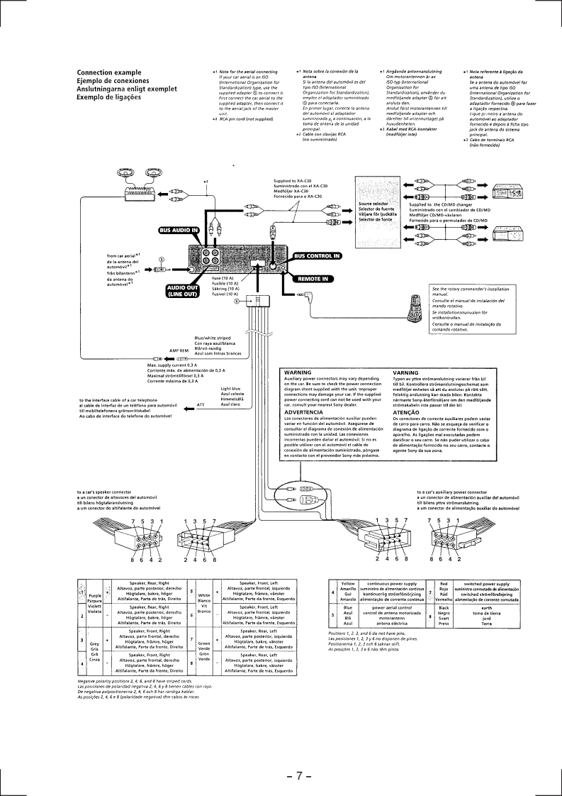 XR-C4120SERVICE MANUALAEP ModelUK Modelu心Model Name Using Similar MechanismXR-C4100Tape Transport Mechanism TypeMG-25Y.136SPECIFICATIONSCassette player sectionPower amplifier sectionTape track4-track 2-channel stereoOutputsSpeaker outputsWow and flutter0.0%WRM5)(sure seal connectors)Frequency response30-18,000HzSpeaker impedance4 -8 ohmsSignal-to-noise ratioMaximum power output 40 Wx 4 (at 4 ohms)Cassette typeTYPE I,IV61dBGeneralTYPEI58 dBOutputsAudio outputPower aerial relay controlTuner sectionleadPower amplifier controlFMleadTuning range87.5-108.0MHzTelephone ATT controlAerial terminalExternal aerial connectorcadIntermediate frequency10.7 MHzTone controlsB5±8dBat100HzUsable sensitivity9dBfTreble 38 dB at 10 kHzSelectivity75 dB at 400 kHzPower requirements12 V DC car batterySignal-to-noise ratio65 dB (stereo),(negative earth)68 dB(mono)DimensionsHarmonic distortion at 1 kHz0.7%(stereo).Mounting dimensionsApprox.182×53×164mm0.4%(mono)(w/h/d)Separation35 dB at 1 kHzMassApprox.1.2 kgFrequency response30-15,000HzSupplied accessoriesRotary commander (1)Parts for installation andMW/LWconnections(1 set)Tuning rangeMW:531-1,602kHzFront panel case(1)LW:153-281kHzAerial terminalExternal aerial connectorIntermediate frequency10.7 MHz/450 kHzDesign and specifications are subject to changeSensitivityMW:30 uVwithout noticeLW:50 uVFM/MW/LW CASSETTE CAR STEREO■MICROFILMSONY