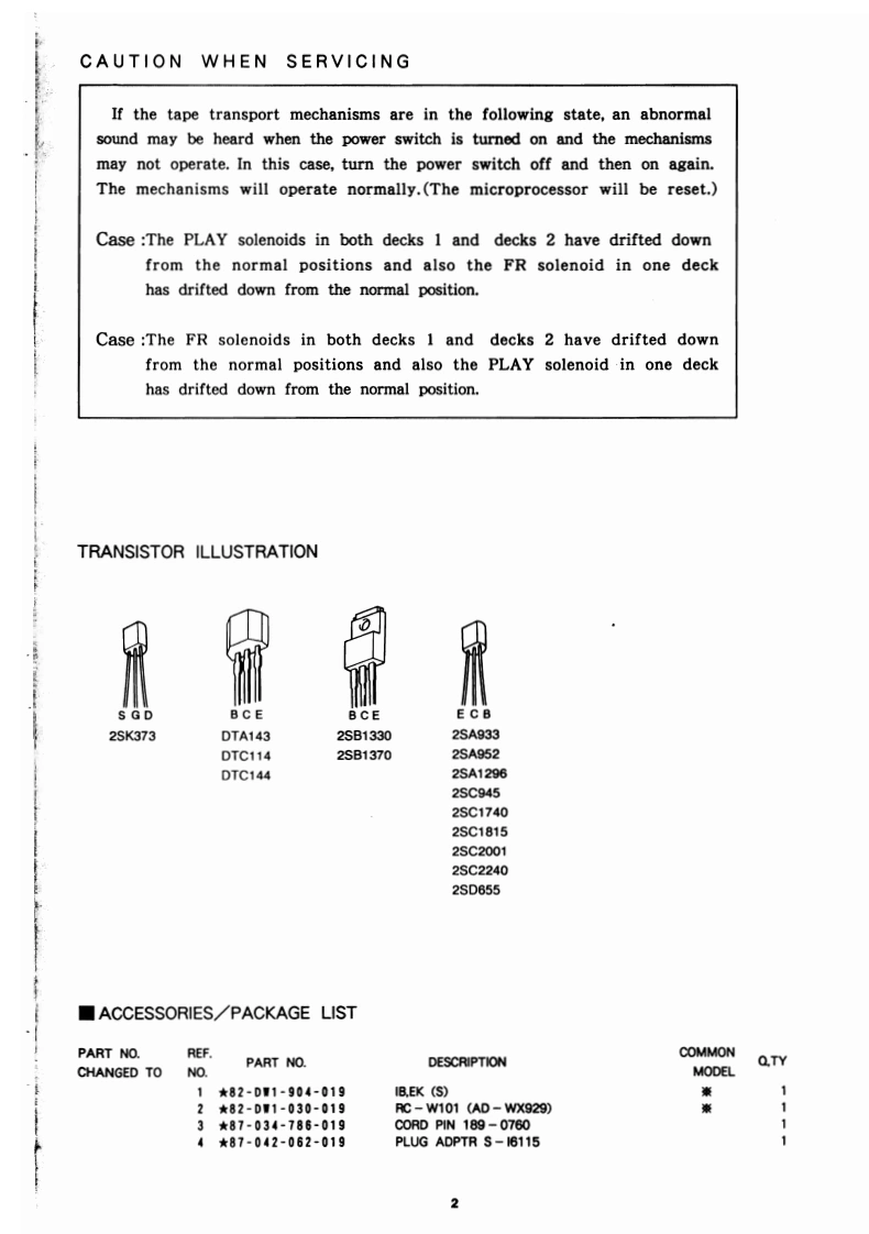 aluaAD-WX929AD-WX828090009m00AD-WX929IVO N VWAD-WX828STEREO CASSETTE DECK●BASIC TAPE MECHANISM:a-1AMKI·TYPE.HEE,KSPECIFICATIONSTypeStereo cassette tape deckOutputPLAYALINE OUT:350 mV (0 VU)Track format4 tracks,2 channelsOptimum load impedance 47 kn or morePHONES:0.8 mW (load impedance 32Power requlrementsAD-WX929HE/AD-WX828HEo VU)AC 120/220/240V switchable,50/60HzAD-WX929E/AD-WX828EOuter dimensionsW×HXD)AC 230V.50HzAD-WX929:430×140×317.5mmAD-WX929K/AD-WX828KAD-WXB28:430×140×317.5mmAC 240V,50HzWelghtPower consumptlon23WFrequency responseMetal tape:20-18,000Hz-8de(-20dB Recording)CrO2 tape20-17.000Hz-8dB-20 dB Recording)Normal tape:20-16,000Hz-1 dB(-20dB Recording)Signal-to-noise ratioWow and flutterAD-WX929:0.060%(WRMS)AD-WX828:0.065%(WRMS)Recording systemAC biasErasure systemAC eraseMotorDC motor×2OI AaSPlayback/recording headPermalloy headErasure headDouble gap Ferrite headInputREC/LINE IN:50mV(input impedance 47kn.0 VU)*Design and specifications are subject to change without notice.Dolby noise reduction and HX Pro headroomextensionmanufactured under license from Dolby Laboratories LicensingCorporation.HX Pro originated by Bang Clufsen.DOLBY".the double-D symbol and "HX PRO"aretrademarks of Dolby Laboratories Licensing Corporation.S/M Code No.0184 DATE OF ISSUE 2/1993-I