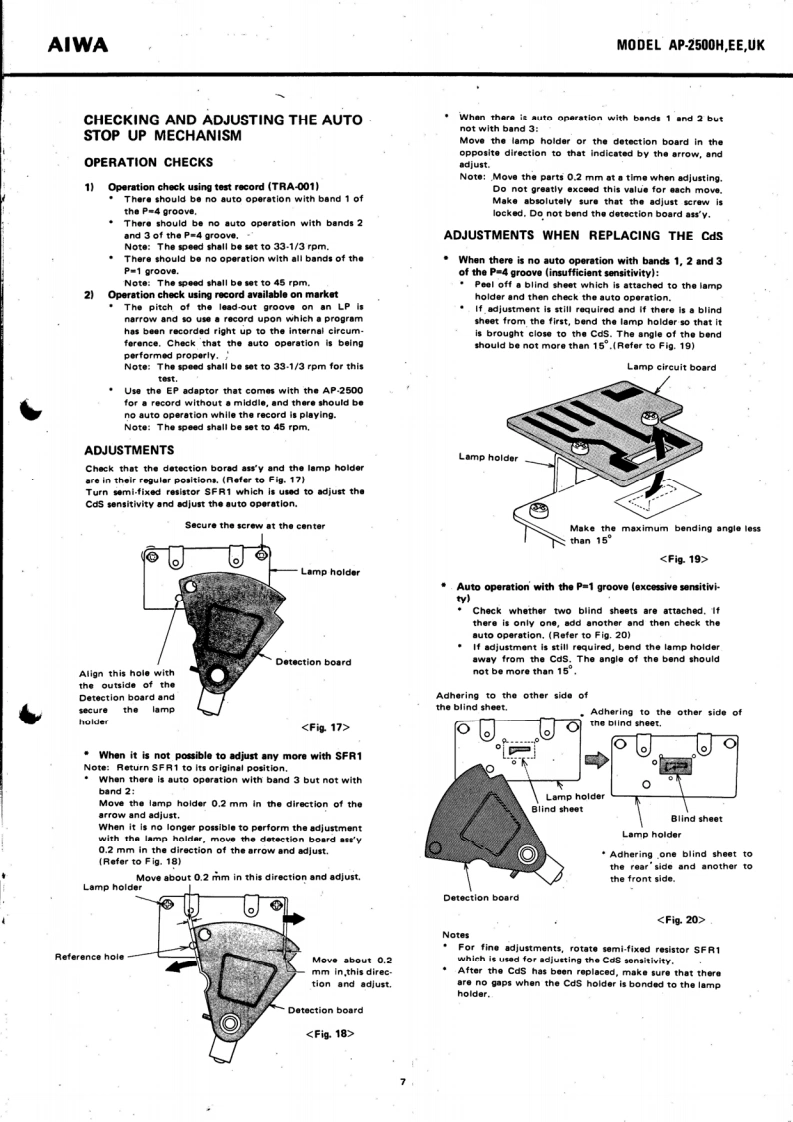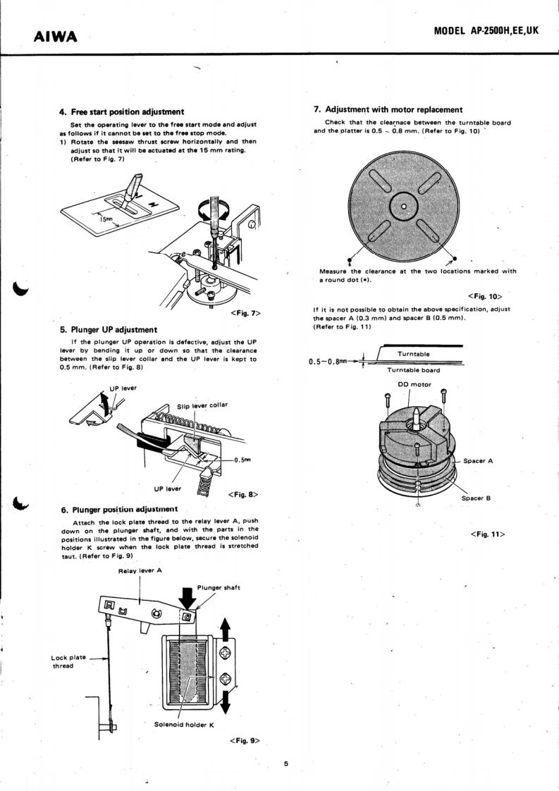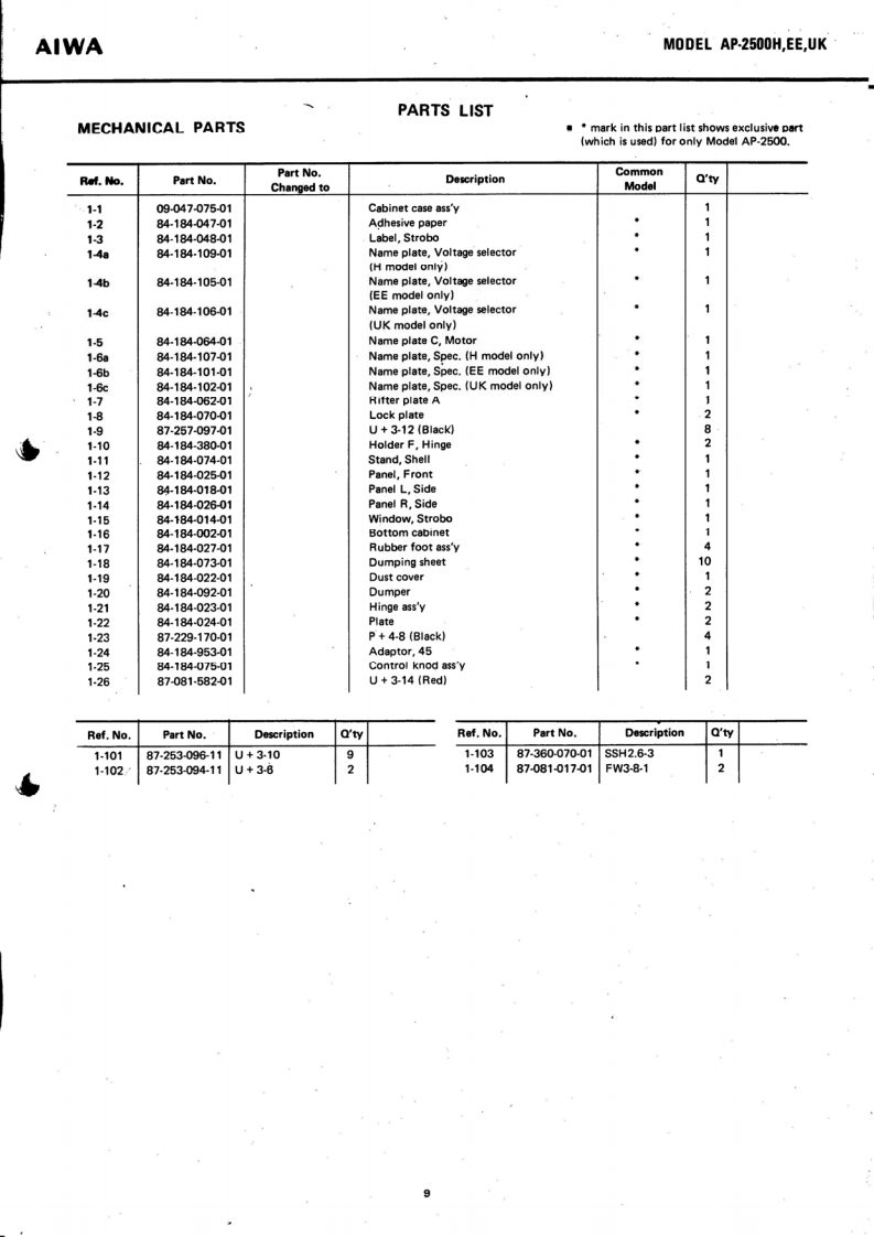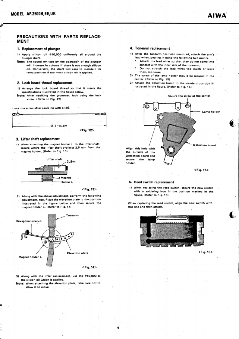 。IRECTSTEREO TURNTABLE SYSTEMMoDEL AP-2500H,EE,UKAIWA(SERVICE MANUAL】isoSet using ISO screwsDATE OF ISSUE 30/11/1977SPECIFICATIONSType:Direct Drive Stereo Turntable SystemTONE ARMCircuitry:Type:Static balancedPower Supply:AP-2500H,EE:Effective length:237mmAC 120 V/220 V (switchable)●Dverhang:50/60Hz15mmAP.2500Ue:Tracking error:+2.1°-1.6AC 120 V/240 V(switchable)Off-set angle:2250/60HzStylus pressurePower Consump-range:0-3 gramsAcceptable cartridgetion:13Wweight:3-14 gramsDimensions:480W×152Hx404Dmm.11 -22 grams (with auxiliary weight)Weight:10.5kgMaximum acceptablecartridge-headshellTURNTABLEweight:32.5 grams (with auxiliary weight)TypeiDireet drive typeMotor:FG Servo 3-phase,8-pole,24-slot DCACCESSORIESHead shellDirect Drive motorRPM:33 1/3 rpm,45 rpm45 rpm adaptorRPM range:4%(45 rpm)Platter:Die-cast aluminum,314 mm diameterS/N ratio:More than 60 dB (IEC B Curve)The specifications and external appearance of this set areWow/flutter:Less than0.03%WRMS】subject to change without prior notice.