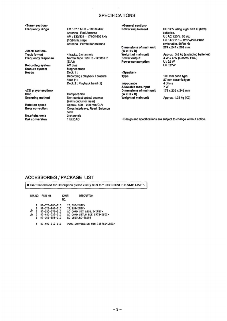aluaaiwaSERVICECA-DW530IVONVNCD CARRY COMPONENT SYSTEMBASIC TAPE MECHANISM:TN-21ZSW-1694·TYPE:LH,UBASIC CD MECHANISM:KSM-213 CDMREVISION PUBLISHINGThis Service Manual is the "Revision Publishing"and replaces"SimpleManual"(S/M Code No.09-983-258-401)S/M Code No.09-985-251-5FE