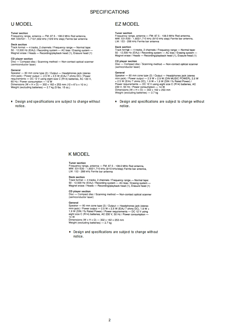 CSD-TD51u(S),K(S),EZ(S)aiwaSERVICECSD-TD52u(w)CSD-TD53u四9日99991890000SERVICE MANUALCOMPACT DISC RADIOBASIC TAPE MECHANISM:TN-21ZVC-2000CASSETTE RECORDERBASIC CD MECHANISM:DA11T3CThis Service Manual is the'Revision Publishing'and replaces 'Simple Manual'CSD-TD51 U(S)/TD52 U(W)/TD53 U(L)(S/M Code No.09-003-343-3T1)CSD-TD51 EZ(S),K(S)(S/M Code No.09-003-343-3T2).a uaREVISIONDATAS/MC0deNo.09-003-343-3R1