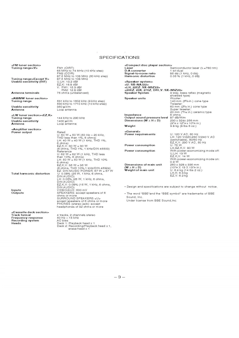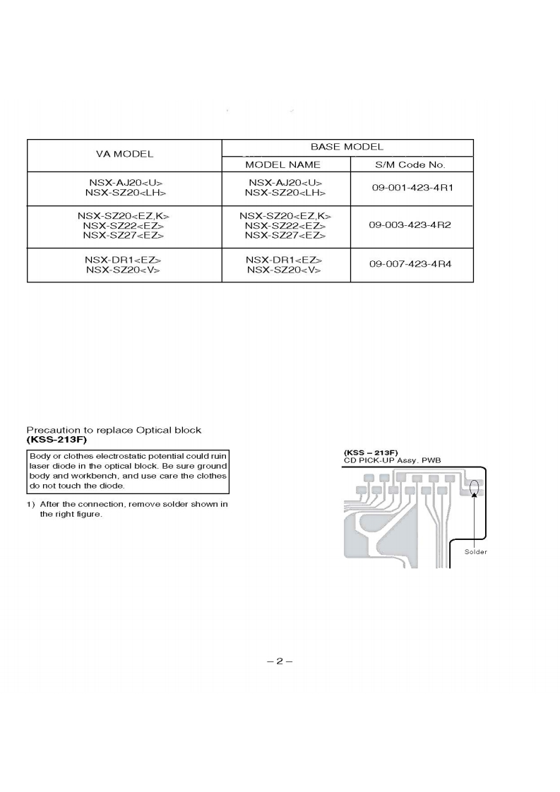 NSX-AJ20UaI山aSERVICENSX-SZ20LH,EZ,K,VNSX-SZ22EZNSX-SZ27EZNSX-DR1EZSERVICE MANUALCOMPACT DISCBASIC TAPE MECHANISM:ZZM-3STEREO SYSTEMBASIC CD MECHANISM:AZG-1SYSTEMCDTAPECDREMOTECASSEIVERMECHANISMMECHANISMSPEAKERCONTROLLERNSX-AJ20CX-NAJ20SX-NAJ22ZZM-3 PR1NFAZG-1 YKZD3RDFNSX-SZ20CX-NSZ20SX-NSZ22NSX-SZ20CX-NSZ20SX-NSZ20RC-ZAS02NSX-SZ22CX-NSZ22ZZM-3 PR1NMAZG-1 ZD3RDMSX-NSZ22NSX-DR1CX-NDR1SX-NSZ20NSX-SZ27CX-NSZ27SX-NSZ20RC-ZAS17This Service Manual contains information about the difference betweenNSX-AJ20/SZ20/SZ22/SZ27/DR1 (VA model)and NSX-AJ20/SZ20/SZ22/SZ27/DR1.If requiring the other information,see Service Manualas listed on page 2.Refer to MAIN C.B parts number for difference of model.8A-NF9-701-010 is for NSX-AJ20/SZ20/SZ22/SZ27/DR1VA model.If requiring information about the CD mechanism,see Service Manualof AZG-1 (S/M Code No.09-001-335-3N8)aluaSUPPLEMENTDATAS/M Code No.09-00C-423-4S3