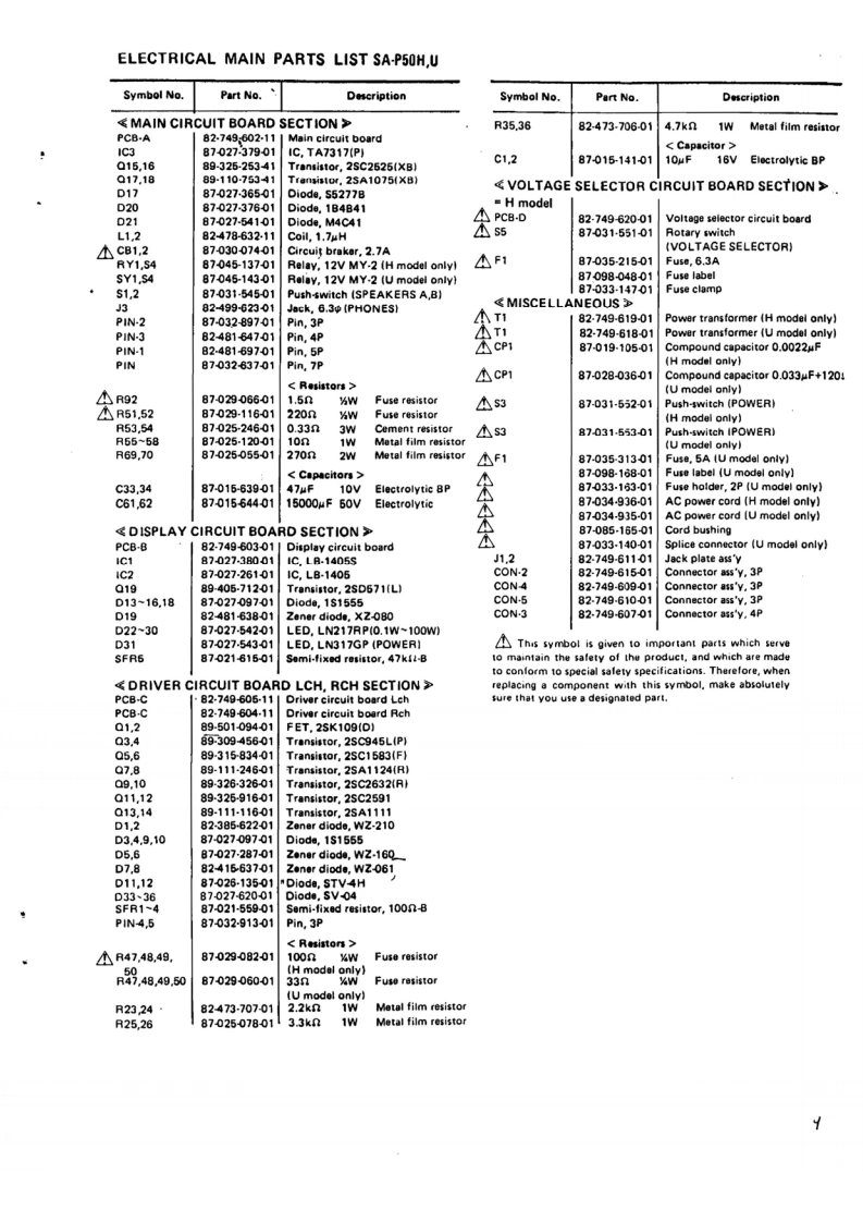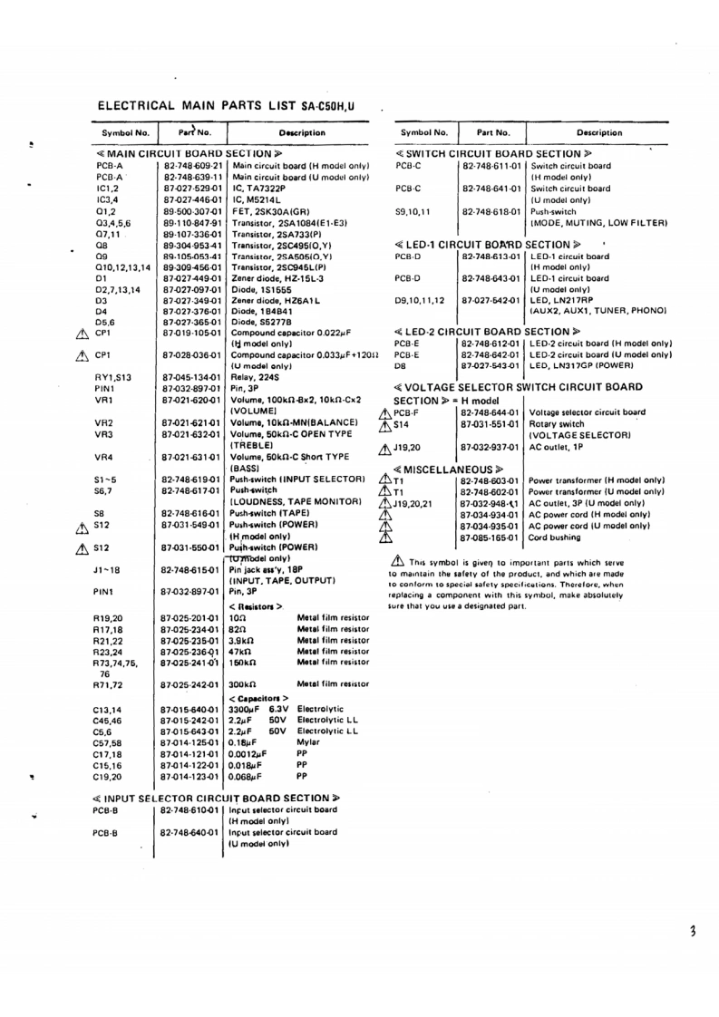 2深MOPEL NO ST-R5OHUSTEREO,PREAMPLIFIERDC STEREO POWER AMPLIFIER MOPEL NO.SA-P5OHUAIWA[SERVICE MANUAL】DATE OF ISSUE 5/1980Cede Ne.15-500-000-63Code No.1-50-000-43C4deNe,176c0-00083以0变“之335533555运$T-R50SA-C50SA-P50SPECIFICATIONSSPECIFICATIONSSPECIFICATIONS4 IC.2 FET,12,3 ICA.2 FETs,17 wanultan.10447.8~108 MHE三More than 105 al.08%shen 0.86 mw-140MCL then 0.1 mv与ehn8.BmW