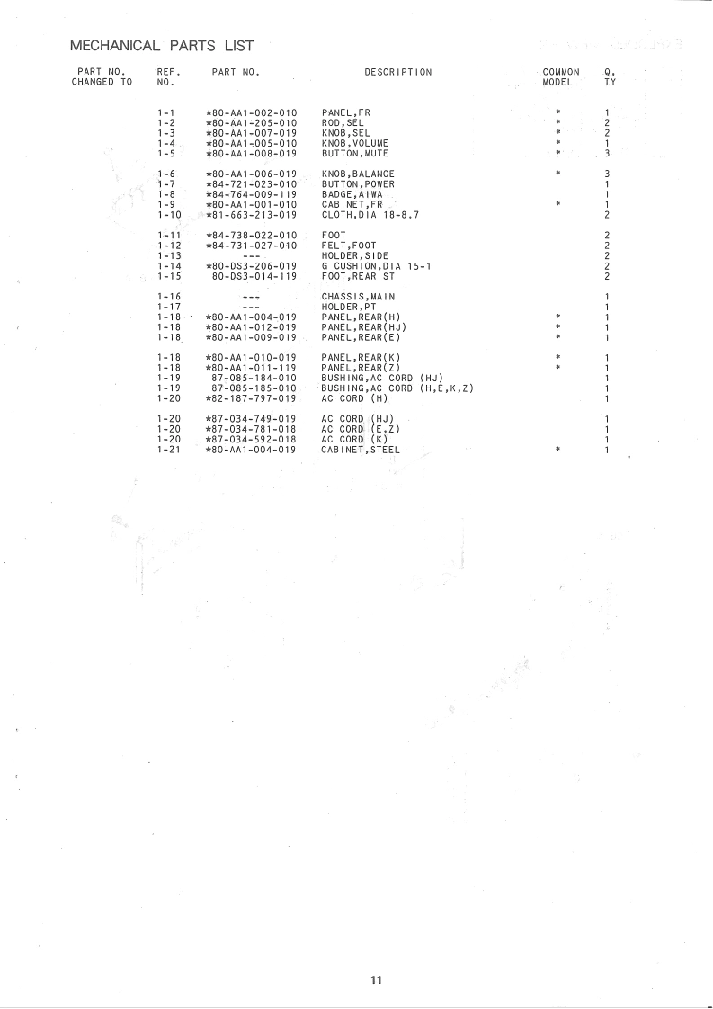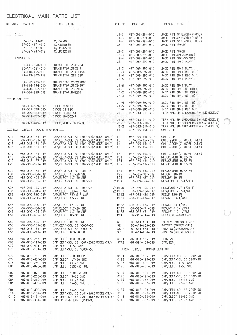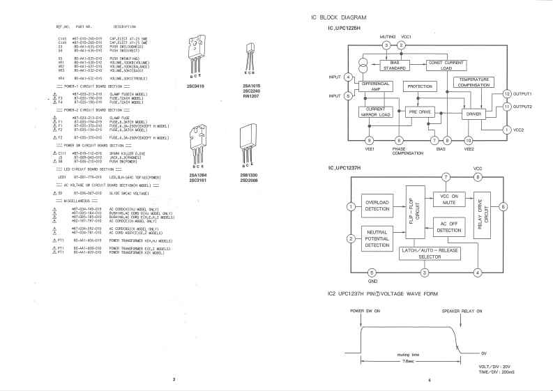 S/M Code No.90-108 DATE OF ISSUE 10/1990-1AIWAXA-006SERVIC旺-①①MANUALSTEREO INTEGRATED AMPLIFIER·TYPE.H,E,K,ZSPECIFICATIONSCommonPreamplifierPower requirementsS/N ratioIHF A curve short circuitedXA-006HPHONO (MM)89dBAC120V/220V/240V(5mV input)switchable,50/60HzTUNER,CD,VCR/AUX,TAPEXA-006E,Z/DAT 107dBAC 220V,50HzInput jacksXA-006K(Sensitivity /input impedance)AC 240V,50HzPHONO (MM)2.5mV/47kPower consumptionohmsXA-006H140WTUNER.CD.VCR/AUX,TAPEXA-006E.K,Z380W/DAT 150mV/47kohmsPHONO overload levelPower amplifier85mV (MM)Effective output power[1kHz,T.H.D.0.01%]75W+75WOutput jacks(4 ohms,T.H.D.0.9%.1kHz)(Level/output impedance)56W+56WTAPE/DAT 150mV/47k(8 ohms.T.H.D.0.9%,1kHz)ohmsTotal harmonic distortionHeadphones 8-32 ohms0.018%Speakers 4-16 ohms(20Hz-20kHz,40W,8 ohms)(A+B:8-16 ohms)Output bandwidthRIAA deviation6Hz-50kHz±0.5dB(30Hz-15kHz)(less than 0.05%)Maximum dimensions[Both channels driven,430(W)x128(H)x332(D)8 ohms]mmFrequency responseWeight7.6kgHz-80kHz(+0.5/-3dB)Design and specifications are subject to change withoutnotice.AIWA Co..Ltd.Tokyo JapanPrinted in Japan