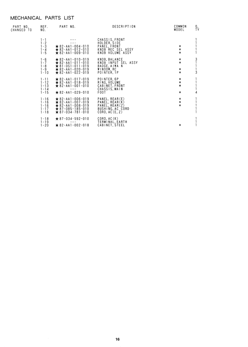S/M Code No.0076 DATE OF ISSUE 7/1992-1XA-950SERVICEMANUALSTEREO INTEGRATED AMPLIFIER·TYPE.E,K,ZSPECIFICATIONSGeneralInput jacksPower requirements(Sensitivity/input impedance)A-950E.ZPHONO:MM230V AC,50 Hz2.5 mV/47k ohmsXA-950KMC240VAC.50H20.2 mV/100 ohmsPower consumptionTUNER,CD VIDEO/AUX.300WTAPE 1,TAPE 2/DAT,ADAPTOR:150 mV/47k ohmsPower amplifierPHONO overload level130 mV (MM)Effective output power(1kHz,T.HD0.01%)150W+150W(4ohms.T.H.D.0.9%.Output jacks(Level/output impedance)1 kHz)TAPE 1,TAPE 2/DAT.100W+100WADAPTOR:150 mV/47k ohms(8 ohms,T.H.D.0.9%Headphones:8-32 ohmsSpeakers:4-16 ohmsTotal harmonic distortion(A+B:8-16 ohms)0.005%RIAA deviationt0.5d8(30Hz-15kHz)(20Hz-20k,75W,SUBSONIC filterB ohms)16 Hz 12 dB/OctOutput bandwidth5 Hz-70 kHzMaximum dimensions(less than 0.05%)(w/h/d)430×140×340mm(Both channels dnven,(17×5/×13'inches)8 ohms)Weighti0.5kg23.1bs)Frequency response5 Hz-150 kHz (9 dB)PreamplifierS/N ratioIHF A curve short circuitedPHONO MM95dB(5 mV input)MC75d8Design and specifications are subject to change without notice.(0.5 mV input)The word "BBE"and the "BBE symbol"are trademarks of BBETUNER,CD,VIDEO/AUX,TAPE 1.TAPE 2/DAT.Sound,Ine.ADAPTOR:110 dBUnder license from BBE Sound.Inc.AIWA CO.,LTD.Tokyo JapanPrinted in Japan
