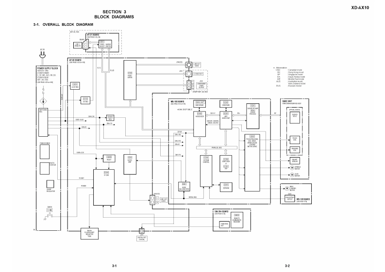 XD-AX10RM-Z400A/Z400ESERVICE MANUALCanadian ModelAEP Model50ag逆UK ModelEModelSingapore ModelMiddle East ModelAustralian ModelNew Zealand Model0Hong Kong Model凸Saudi Arabia ModelRussian ModelSPECIFICATIONSSystemOutputs/InputsGeneralLaser:Semiconductor laser(Jack name:Jack type/Output or Input level/Power requirements:Signal format system:NTSC/PALLoad impedance)120 V AC 60 HzLINE OUT (AUDIO小:Phono jack2Vms/110to240VAC.50/60HzAudio characteristics10kilohms220to240VAC50/60HzFrequency response:DVD VIDEO (PCMDIGITAL OUT(COAXIAL):Phono jack/See page 1-1 for further information96kHz):2 Hz to 44kHz (1.0 dBVDVD0.5 Vp-p/75 ohmsPower consumption:13 WVIDEO(PCM48kHz实:2Hzto22kHzCOMPONENT VIDEO OUTDimensions (approx.):430 x55.5x(+0.5 dB)/CD:2 Hz to 20 kHz (+0.5 dB)(Y.P8,Pg):234mm(17×24i6×94in.)(widhSignal-to-noise ratio (S/N ratio):115 dBPhono jack/Y:1.0 Vp-p/Po,Px:height/depth)incl.projecting parts(LINE OUT (L/R)AUDIOjacks only)0.65 Vp-p/75 ohmsMass (approx.):2.2 kg (4 Ib 14 oz)Harmonic distortion:0.003%(Y,Pn/Cn,Pg/Cg):Operating temperature:5C to 35CDynamic range:DVD VIDEO:103 dB/CD:Phono jack/Y:1.0 Vp-p/Pw/Co,PR/CR:(41℉to95功99 dB0.7 Vp-p/75 ohmsOperating humidity:25 to 80%Wow and flutter:Less than detected valneLINE OUT (VIDEO):Phono jack/1.0 Vp-p/(±0.001%W PEAK)75ohmsSupplied accessoriesThe signals from LINE OUT L/R(AUDIO)S VIDEO OUT:4-pin mini DIN/Y:Check that you have the following items:jacks are measured.When you play PCM1.0 Vp-P,C:0.286 Vp-p (NTSC)/·Audio/video cordsound tracks with a 96kHz sampling75 ohms(pinplug×3←一pinplug×3)(I)frequency,the output signals from the1.0 Vp-p,C:0.3 Vp-p (PAL)75 ohmsRemote commander (remote)(1)DIGTTAL OUT COAXIAL)jack areSize AA (R6)batteries (2)converted to 48 kHz sampling frequency.A plug adaptor is included with somemodels.Specifications and design are subject tochange without notice.d泻VIDEODIGTAL VDBOCD/DVD PLAYER