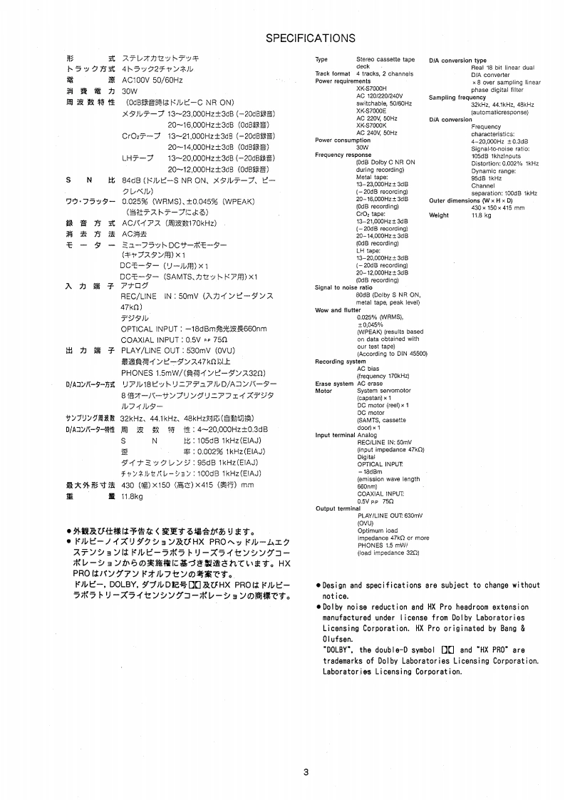 S/M Code No.91-113 DATE OF ISSUE 4/1992-TaiwaXK-S7000SEVC旺00MANUALSTEREO CASSETTE DECKBASIC TAPE MECHANISM:OZM-7。TYPE.REK製品3-K:80DS2-0100圹一上又技術二ュ一又番号速将内容G-G-G-了千)株式会社AIWA CO.,LTD.Tokyo Japan〒110東京都台東区池之端1-2-11公03(3827)3111(代表)Printed in JapanHA