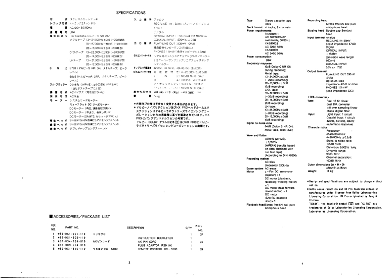 SERV.36 M1S/M Code No.91-094 DATE OF ISSUE 5/1992TaluaXK-S9000SERVICEMANUALSTEREO CASSETTE DECK●BASIC TAPE MECHANISM:OZM -5R1·TYPE.D,H,E,K製品-K:80DS1-0100少一上又技術二ュ一又番号連格内容G-GG?丫)株式会社AIWA CO.,LTD.Tokyo Japan斤110東京都台東区池之端1-2-11B03(3827)3111(代表)Printed in JapanGA