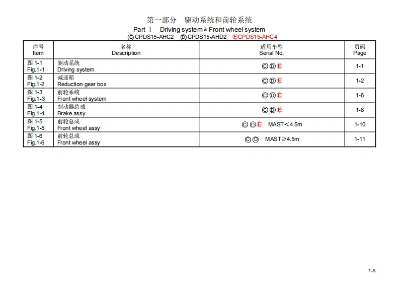 杭州叉车三支点蓄电池平衡重式叉车CPDS15–AHD2零部件手册找手册网15天前发布关注私信13.44MB172页025杭州叉车三支点蓄电池平衡重式叉车CPDS15–AHD2零部件手册此内容为付费资源,请付费后查看¥29¥31黄金会员免费钻石会员免费登录购买付费资源 第1页 / 共172页 第2页 / 共172页 第3页 / 共172页 第4页 / 共172页 第5页 / 共172页 第6页 / 共172页 第7页 / 共172页 第8页 / 共172页 第9页 / 共172页 第10页 / 共172页 试读已结束,还剩162页,您可下载完整版后进行离线阅读 THE END杭州叉车/Dino/Bao-li叉车/现代 文本预览 A Series三支点蓄电池平衡重式叉车CPDS15-AHC2CPDS15-AHD2ELECTRIC THREE-WHEEL FORKLIFT TRUCKCPDS15-AHC4零件目录PARTS CATALOG杭叉集团股份有限公司HANGCHA GROUP CO.,LTD.11/2023 查看更多 收起部分 喜欢就支持一下吧收藏