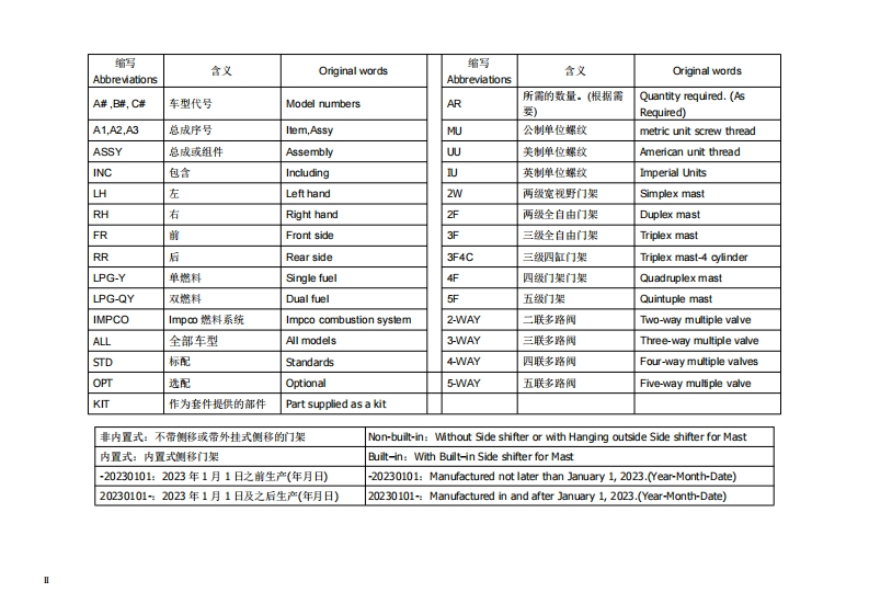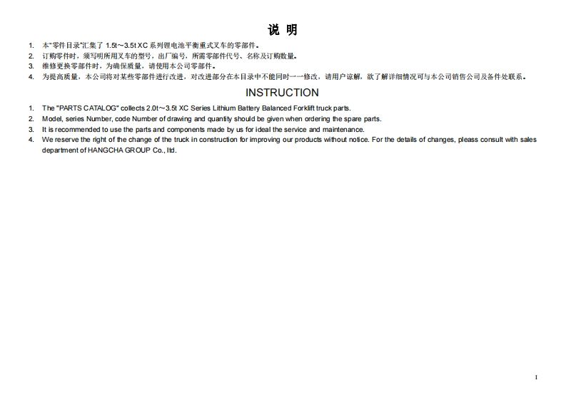 杭州叉车锂电池专用平衡重式叉车CPD15182025303538-XCY2-SI零部件手册找手册网15天前发布关注私信17.31MB535页032杭州叉车锂电池专用平衡重式叉车CPD15182025303538-XCY2-SI零部件手册此内容为付费资源,请付费后查看¥29¥31黄金会员免费钻石会员免费登录购买付费资源 第1页 / 共535页 第2页 / 共535页 第3页 / 共535页 第4页 / 共535页 第5页 / 共535页 第6页 / 共535页 第7页 / 共535页 第8页 / 共535页 第9页 / 共535页 第10页 / 共535页 试读已结束,还剩525页,您可下载完整版后进行离线阅读 THE END杭州叉车/Dino/Bao-li叉车/现代 文本预览 XC Series锂电池专用平衡重式叉车CPD15/18/20/25/30/35/38-XCY2S1CPD20/25/27/30/35-XCY2H-SElectric Forklift TruckCPD20-XCXY2-SI零件目录PARTS CATALOG杭叉集团股份有限公司HANGCHA GROUP CO.,LTD.0512025 查看更多 收起部分 喜欢就支持一下吧收藏