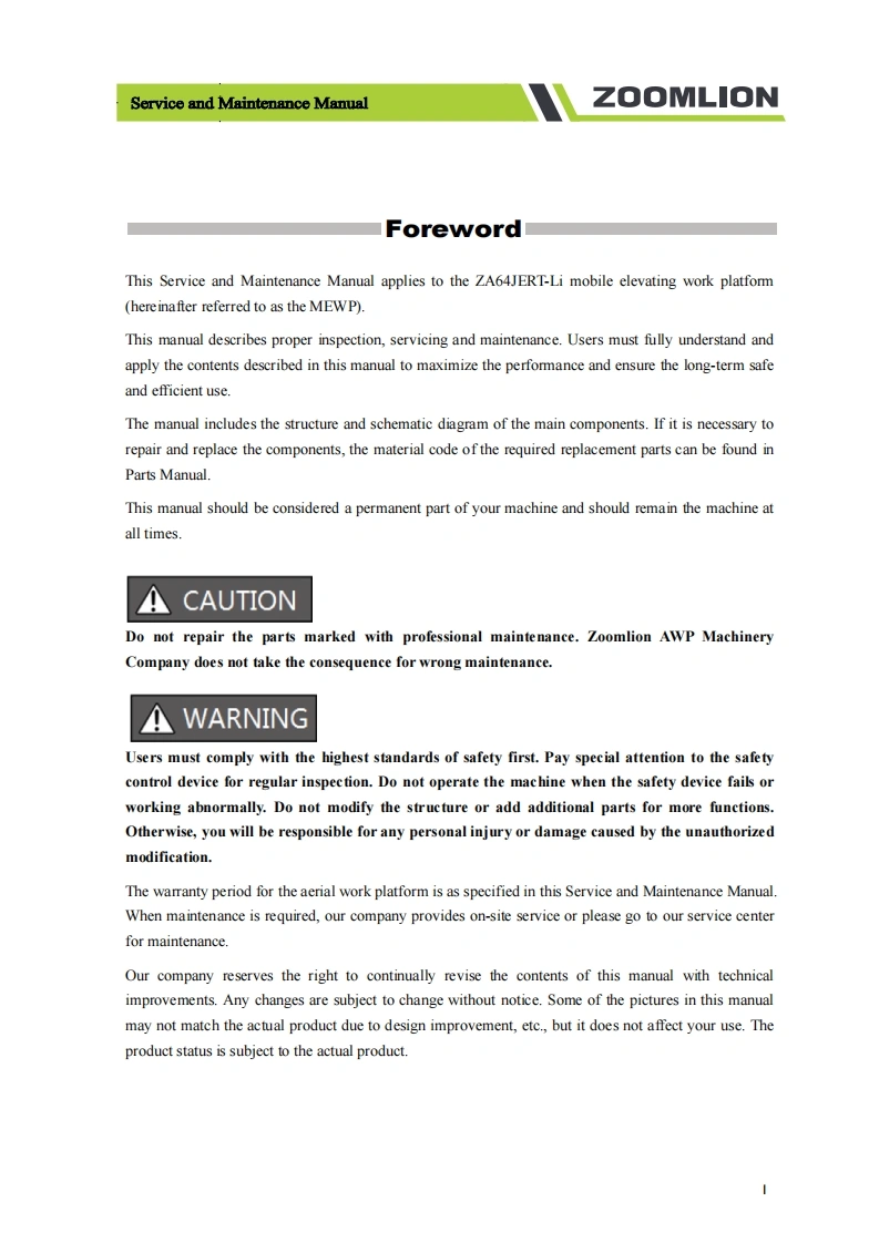 中联重工NA-SE-ZOOMLION-ZA64JERT-Li-Service-and-Maintenance-Manua维修手册含电器液压图纸找手册网8天前发布关注私信4.08MB111页081中联重工NA-SE-ZOOMLION-ZA64JERT-Li-Service-and-Maintenance-Manua维修手册含电器液压图纸此内容为付费资源,请付费后查看¥29¥31黄金会员免费钻石会员免费登录购买付费资源 第1页 / 共111页 第2页 / 共111页 第3页 / 共111页 第4页 / 共111页 第5页 / 共111页 第6页 / 共111页 第7页 / 共111页 第8页 / 共111页 第9页 / 共111页 第10页 / 共111页 试读已结束,还剩101页,您可下载完整版后进行离线阅读 THE END中联重科/Doosan/BT 文本预览 NA-SEZOOMLIONZooL山aZOOMLIONZOOMLIONZOOMLIONMLIONZOOMLIONZOOMLIONZOOMLIOZA64JERT-LiOMLIONService and Maintenance ManualOMLIONZOOMLIONZOOMLION INTELLIGENT ACCESS MACHINERY CO.,LTD.ZOOMLION 查看更多 收起部分 喜欢就支持一下吧收藏