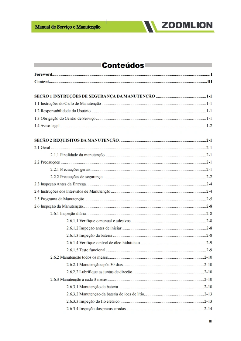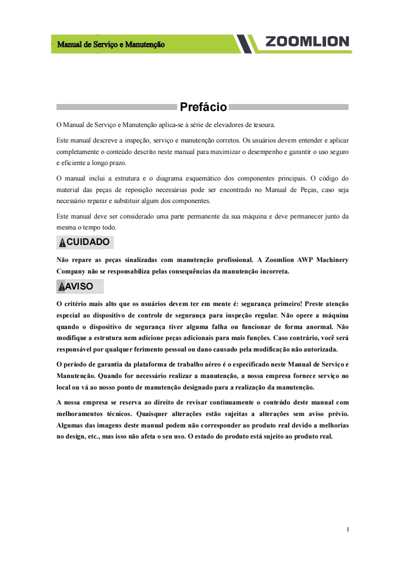 Manual de Servico e ManutencaoZOOMLIONZOOMLIONZS1414HD/ZS1414DC/ZS1414HD-Li/ZS1414DC-Li/ZS1212HD/ZS1212DC/ZS1212HD-Li/ZS1212DC-Li/ZS1012HD/ZS1012DC/ZS1012HD-Li/ZS1012DC-Li/ZS0808HD/ZS0808DC/ZS0808HD-Li/ZS0808DC-Li/ZS0608HD/ZS0608DC/ZS0608HD-Li/ZS0608DC-Li/ZS0607HD/ZS0607DC/ZS0607HD-Li/ZS0607DC-Li/ZS0407DC/ZS0407DC-LiManual de Servico e ManutencaoAgosto 2020 Edicao A