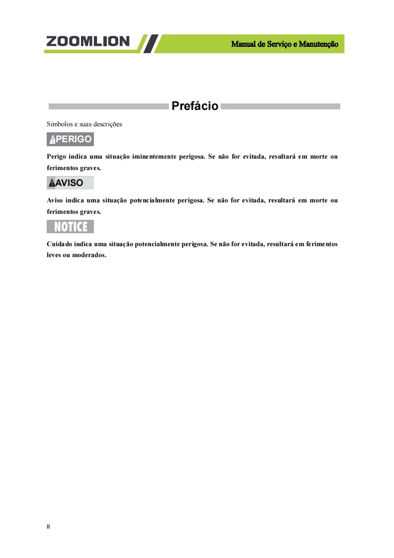 Manual de Servico e ManutencaoZOOMLIONZOOMLIONZS1414HD/ZS1414DC/ZS1414HD-Li/ZS1414DC-Li/ZS1212HD/ZS1212DC/ZS1212HD-Li/ZS1212DC-Li/ZS1012HD/ZS1012DC/ZS1012HD-Li/ZS1012DC-Li/ZS0808HD/ZS0808DC/ZS0808HD-Li/ZS0808DC-Li/ZS0608HD/ZS0608DC/ZS0608HD-Li/ZS0608DC-Li/ZS0607HD/ZS0607DC/ZS0607HD-Li/ZS0607DC-Li/ZS0407DC/ZS0407DC-LiManual de Servico e ManutencaoAgosto 2020 Edicao A