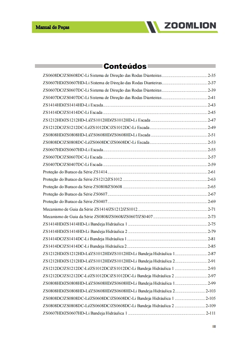 Manual de PecasZOOMLIONZOOMLIONZS1414HD/ZS1414DC/ZS1414HD-Li/ZS1414DC-Li/ZS1212HD/ZS1212DC/ZS1212HD-Li/ZS1212DC-Li/ZS1012HD/ZS1012DC/ZS1012HD-Li/ZS1012DC-Li/ZS0808HD/ZS0808DC/ZS0808HD-Li/ZS0808DC-Li/ZS0608HD/ZS0608DC/ZS0608HD-Li/ZS0608DC-Li/ZS0607HD/ZS0607DC/ZS0607HD-Li/ZS0607DC-Li/ZS0407DC/ZS0407DC-LiManual de PecasAgosto 2020 Edicao A