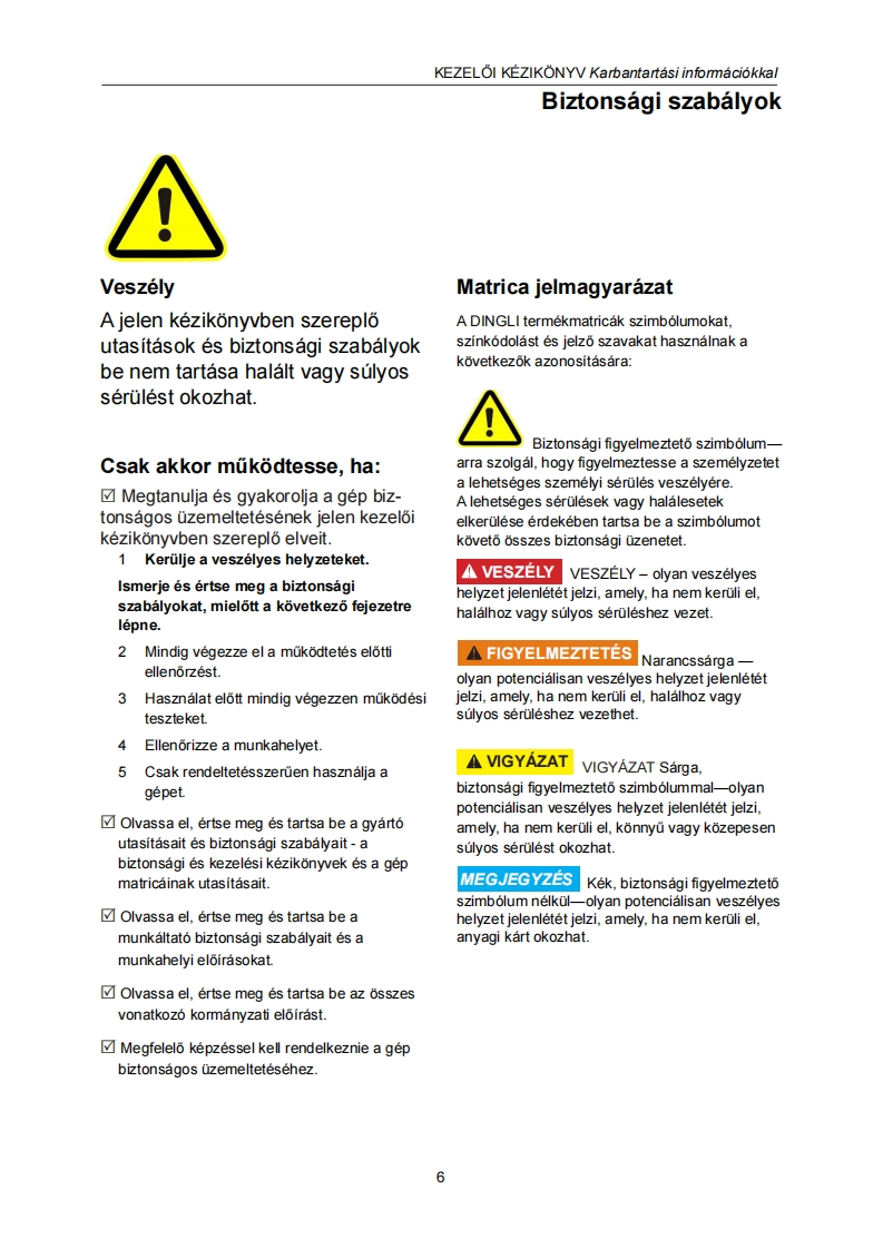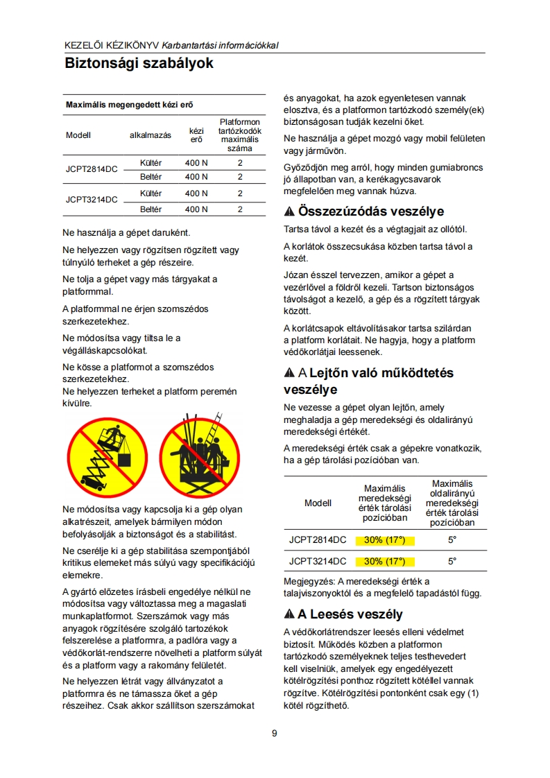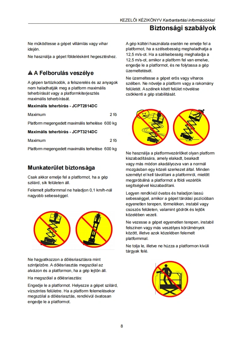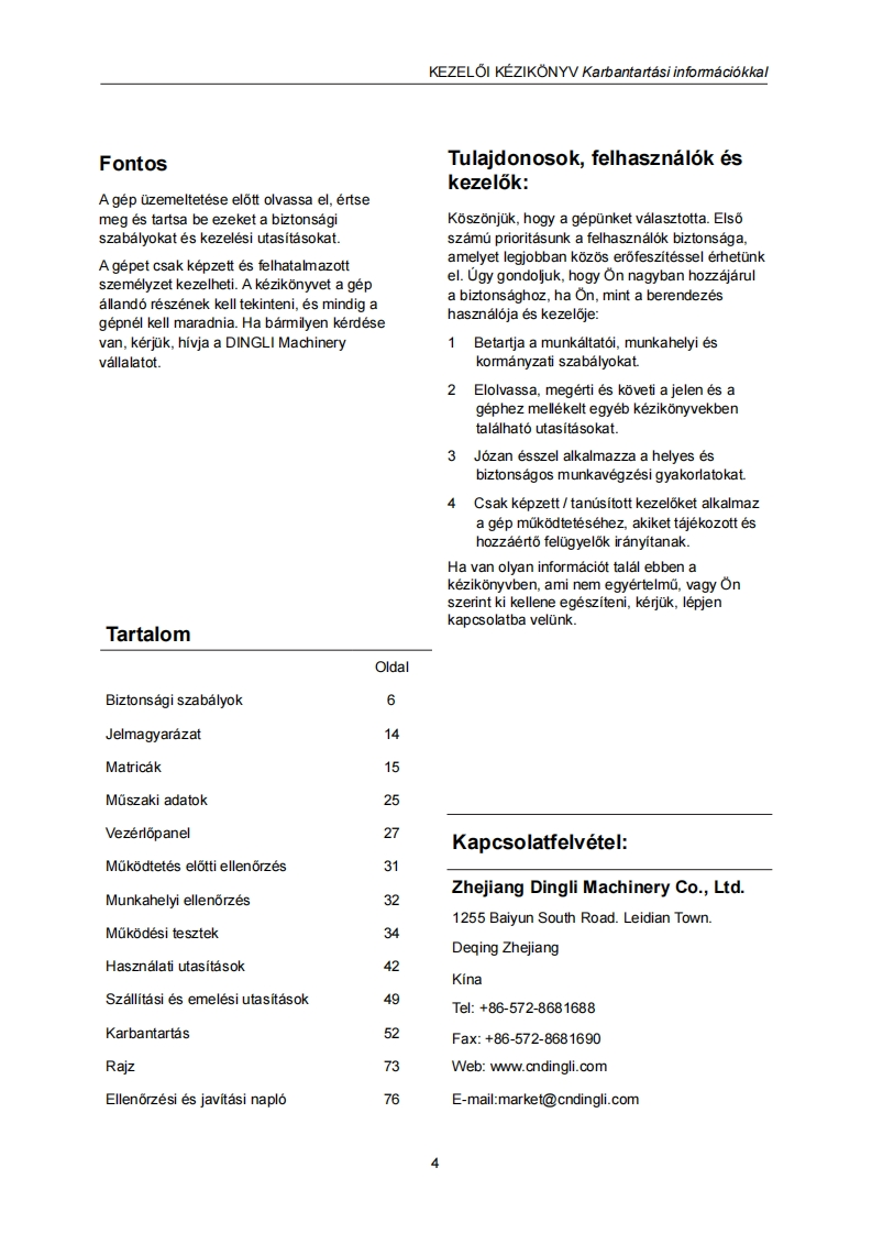 ǒNJARO OLL6 S EMELOKKEZELOI KEZIKONYVKarbantartasi informaciokkal(JCPT2814DC JCPT3214DC modellekhez)D知JCPT3214DCFIGYELMEZTETESNE MOKOOTESS菱A CEPELAMiG且EM OLVASTA多MEG NEM ERTETTEAAlkatreszszam:SM0121113 Rev1.1Zhejiang Dingli Machinery Co.,Ltd.Els6 kiadas,2021.majusi nyomtatas