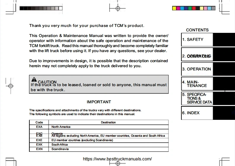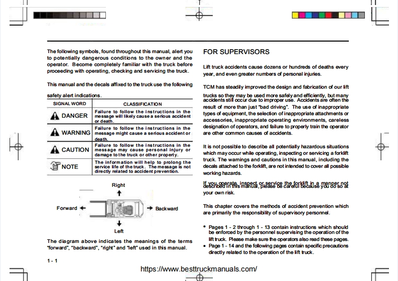No.OF-2BOEETCMOPERATIONMAINTENANGE MANUALORKLIFT TRUCKGas.LPG PoweredDiesel DoweredFG15c13FHG15c3FD15c13FHD15c3zFHD15c3FHD20c3AFG15T13FHG15T3D15T13015T3zHD15T3FHD20T3AFG18c13HG18c3D18c1318c3z18c3FHD25c3AFG18T13FHG18T3FD18T1318T3zD18T3FHD25T3AFG20c3FHG20c3FD20c3FHD20c3FHD30c3AFG20T3FHG20T3FD20T3FD20T3ZHD20T3FHD30T3AFG25c3FHG25c3FD25c3FD25c3ZHD25c3FG25T3FHG25T3FD25T3FD25T3ZD25T3FG30C3FHG30C3FD30c3FD30c3ZHD30c3FG30T3FHG30T3FD30T3FD30T3ZFHD30T3FG35T3SFD35T3SIt is the responsibility of the operator and supervisor to read and understand this manual.Protect the earth and be kind to your lift truck.TCM CORPORATIONhttps://www.besttruckmanuals.com/