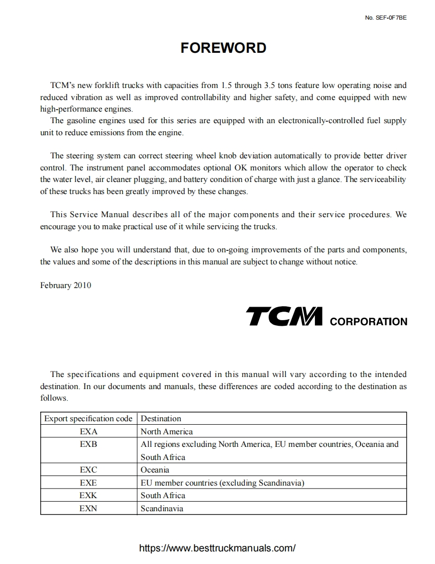 No.SEF-OF7BETCMTCMSERVICE MANUALSERVICE MANUALFORKLIFT TRUCKFHD1513 FHG15T3FHD18r3FHG18r3FD20r3FG20r3FHD20T3A FHG20T3FD25r3FG2513FHD25T3A FHG25T3FD30r3FG30r3FHD30T3A FHG30T3FD35r3sFG3513sTCMCORPORATIONTCM CORPORATIONhttps://www.bestfruckmanuals.com/