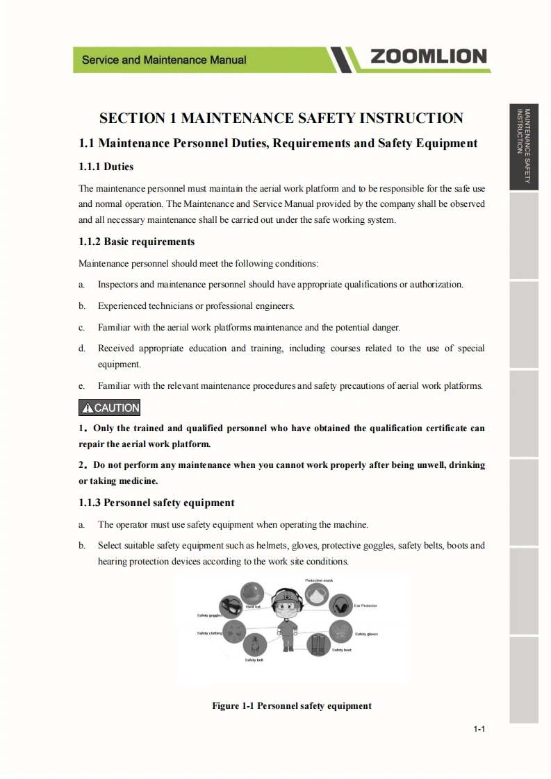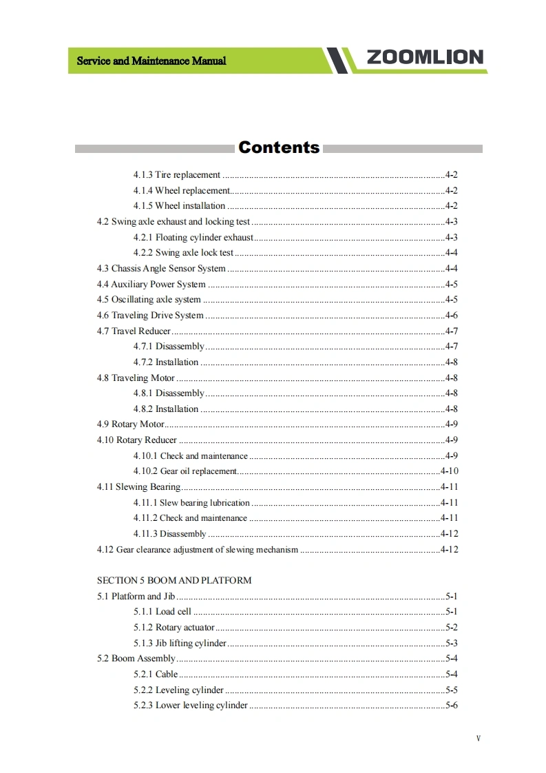 Service and Maintenance ManualZOOMLIONForewordThis Service and Maintenance Manual applies to the ZT20J(ZT68J)aerial work platform (hereinafterreferred to as the AWP)This manual describes proper inspection,servicing and maintenance.Users must fully understand andapply the contents described in this manual to maximize the performance and ensure the long-term safeand efficient use.This manual does not cover the use and maintenance of the engine.For details onengine,please refer to the engine instruction manual.The manual includes the structure and schematic diagram of the main components.If it is necessary torepair and replace the components,the material code of the required replacement parts can be found inParts Manual.This manual should be considered a permanent part of your machine and should remain the machine atall times.ACAUTIONDo not repair the parts marked with professional maintenance.Zoomlion AWP MachineryCompany does not take the consequence for wrong maintenance.AWARNINGThe highest criterion users must keep in mind that Safety first!Pay special attention to the safetycontrol device for regular inspection.Do not operate the machine when the safety device fails orworking abnormally.Do not modify the structure or add additional parts for more functions.Otherwise,you will be responsible for any personal injury or damage caused by the unauthorizedmodification.The warranty period for the aerial work platform is as specified in this Service and MaintenanceManual.When maintenance is required,our company provides on-site service or please go to ourdesignated maintenance point for maintenance.Our company reserves the right to continually revise the contents of this manual with technicalimprovements.Any changes are subject to change without notice.Some of the pictures in thismanual may not match the actual product due to design improvement,etc.,but it does not affectyour use.The product status is subject to the actual product.Symbols and their description:ADANGERDanger indicates an imminently dangerous situation.If not avoided,will result in death or