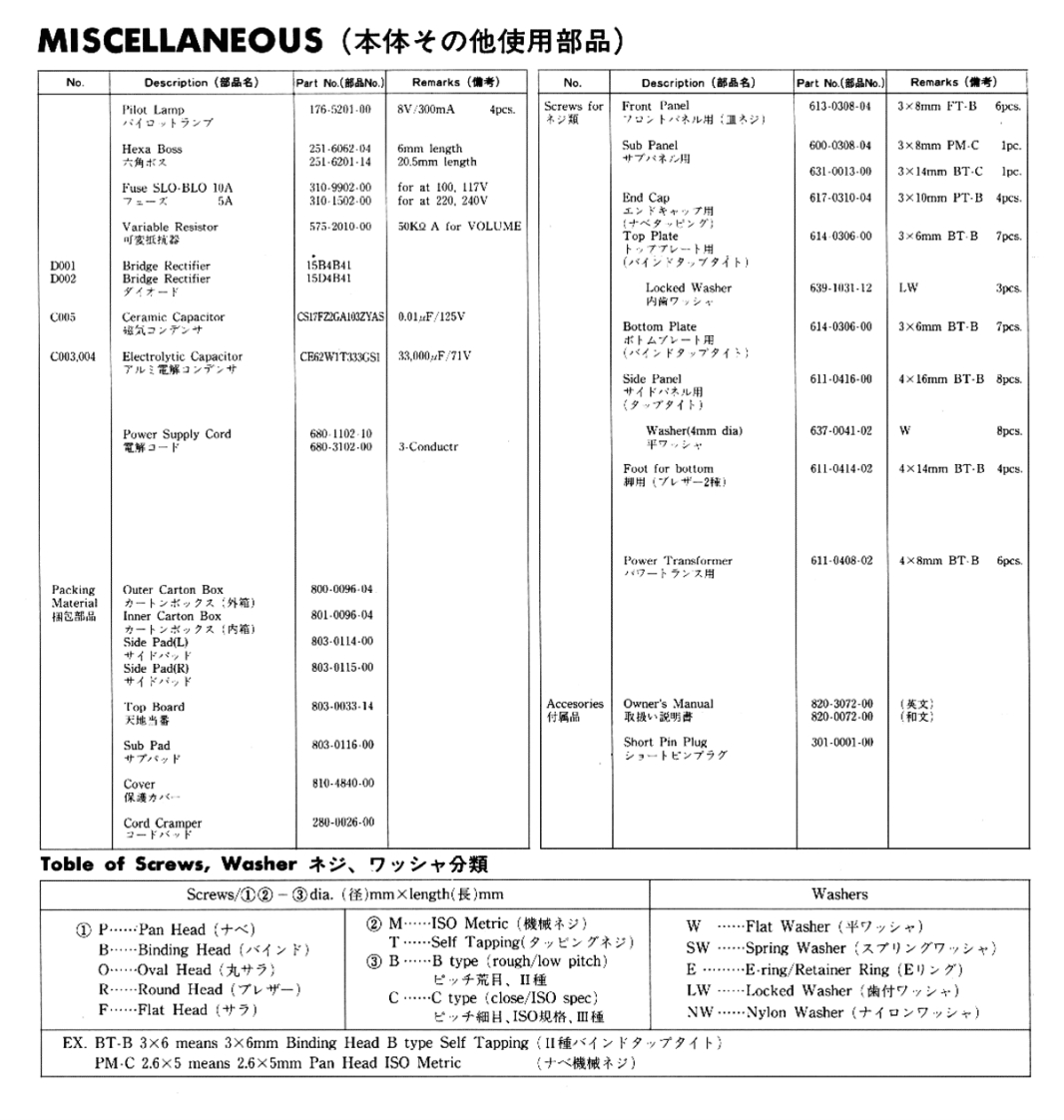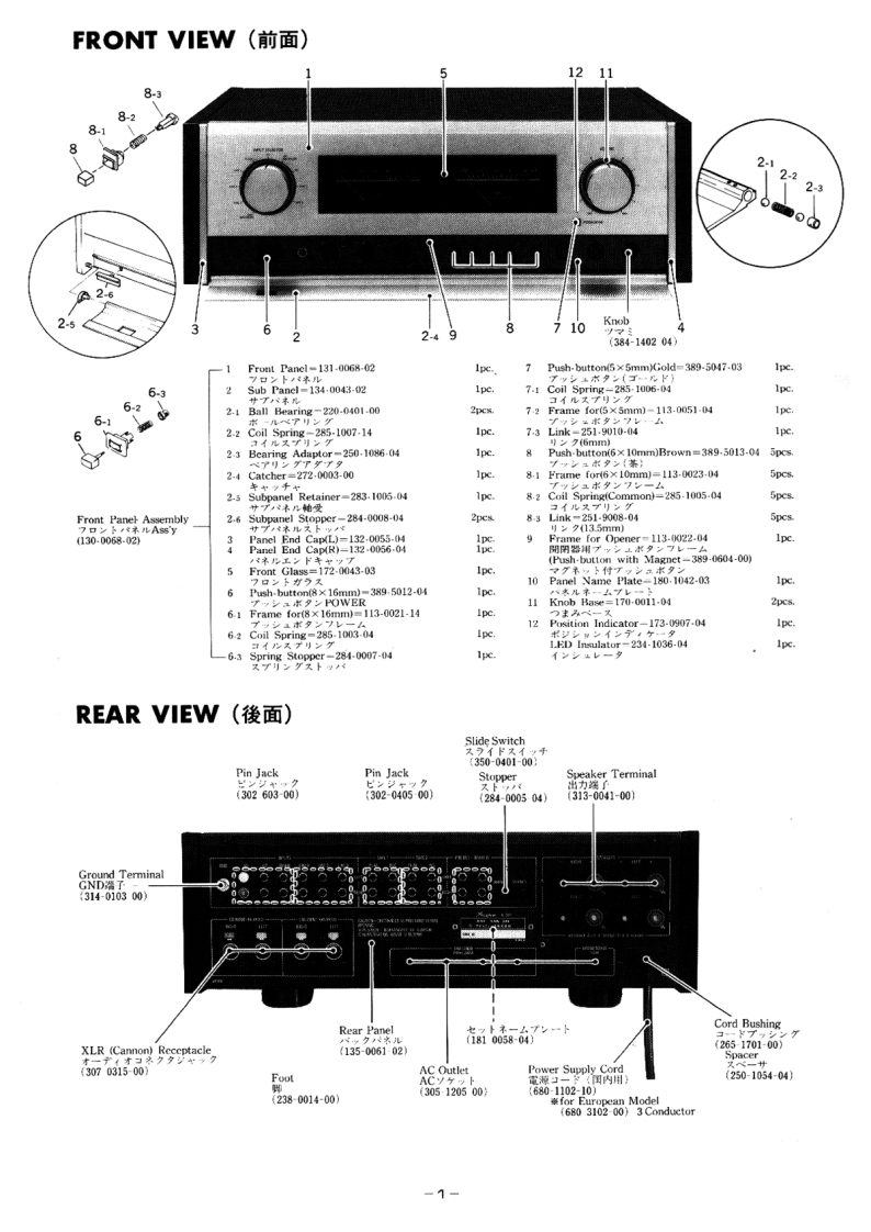 osuphase Service hiormationSTARTING WITH SERIAL NO.L7Y001MeterKnob for VOLUME一夕Knob(178-2019-00)(381-4202-04)门事从(381-4202-04)Push-button for POWER22y之ュポ夕8X16mm(389-5012-04)Push-button with Magnet了了木以卜付ブ以岁ュ求夕(389-0604-00)Push-button (6 X10mm)(389-5013-04)Push-button(Gold)Side Panelブ以ュポ夕之5×5m妙不N未儿(389-5047-03)Knob(139-0006-13)门亲水(384-1402-04)Side PanelTop PlateFront Panel Assembly圹ド礻儿7口卜米儿Ass'y(139-0006-13)(150-0031-02)(130-0068-02)End Cap (R)End Cap (L)Bottom PlateSub Panel工>ド丰ャッブ(132-0056-04)工N牛中yプポ卜厶寸一圹可,末儿(132-0055-04)(155-0037-12)(134-0043-02)INTEGRATED STEREO AMPLIFIERE-305