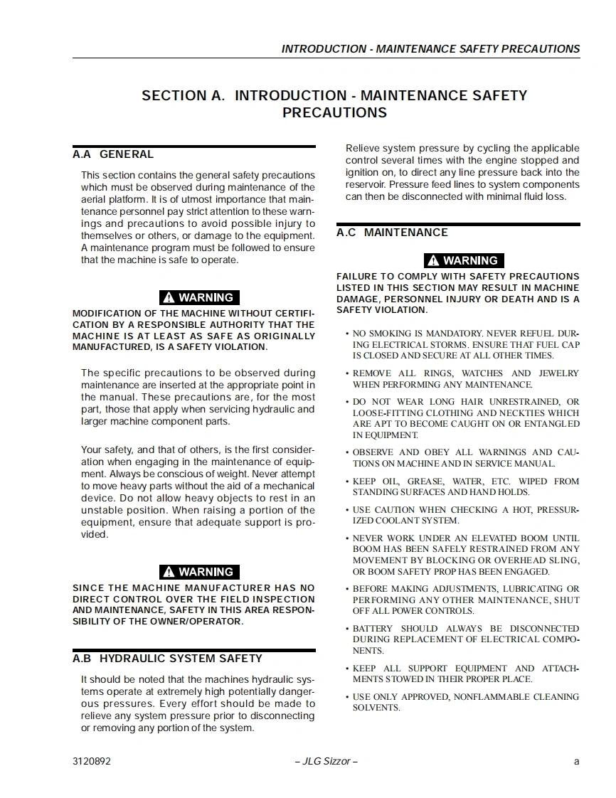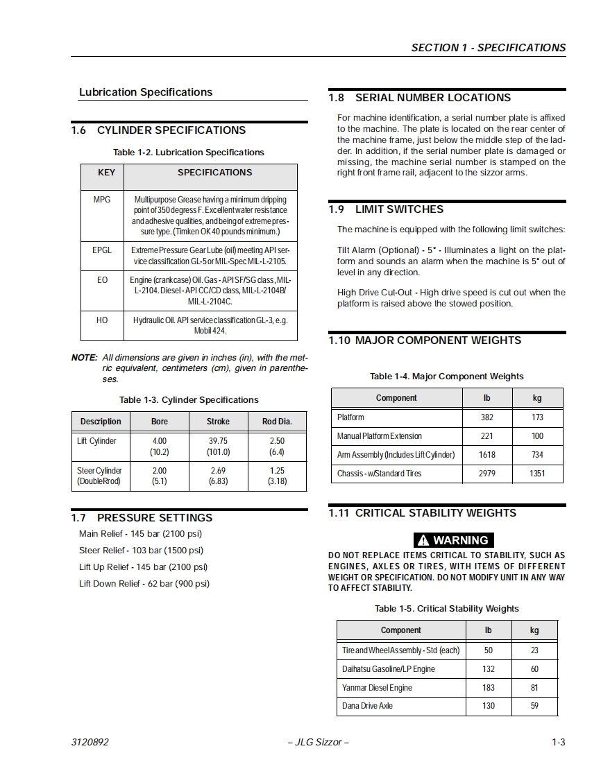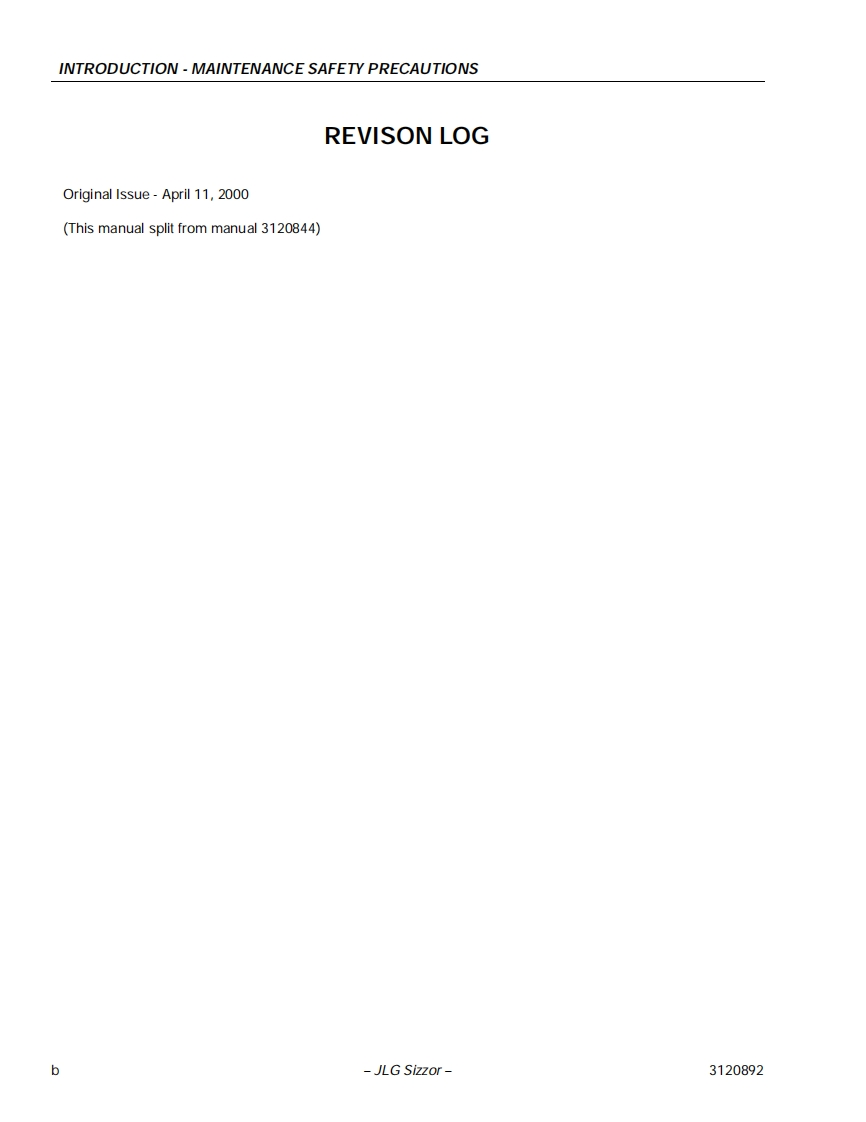 SERVICE MAINTENANCEModel26MRT3120892April 11,20001S09001AUSTRALIAN OFFICEEUROPEAN OFFICECORPORATE OFFICEJLG INDUSTRIES,INC.JLG INDUSTRIES(EUROPE)JLG INDUSTRIES,INC.P.0.B0x5119Kilmartin Place,1 JLG Drive11 Bolwarra RoadTannochside ParkMcConnellsburg,PA.Port Macquarie,AustraliaUddingston,Scotland,G71 5PH172339533Telephone:065 811111Telephone:01698 811005USAFax:065810122Main Fax:.01698811055Telephone:(717)485-5161Parts Fax:01698811455Fax:(717)4856417