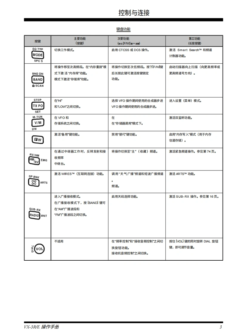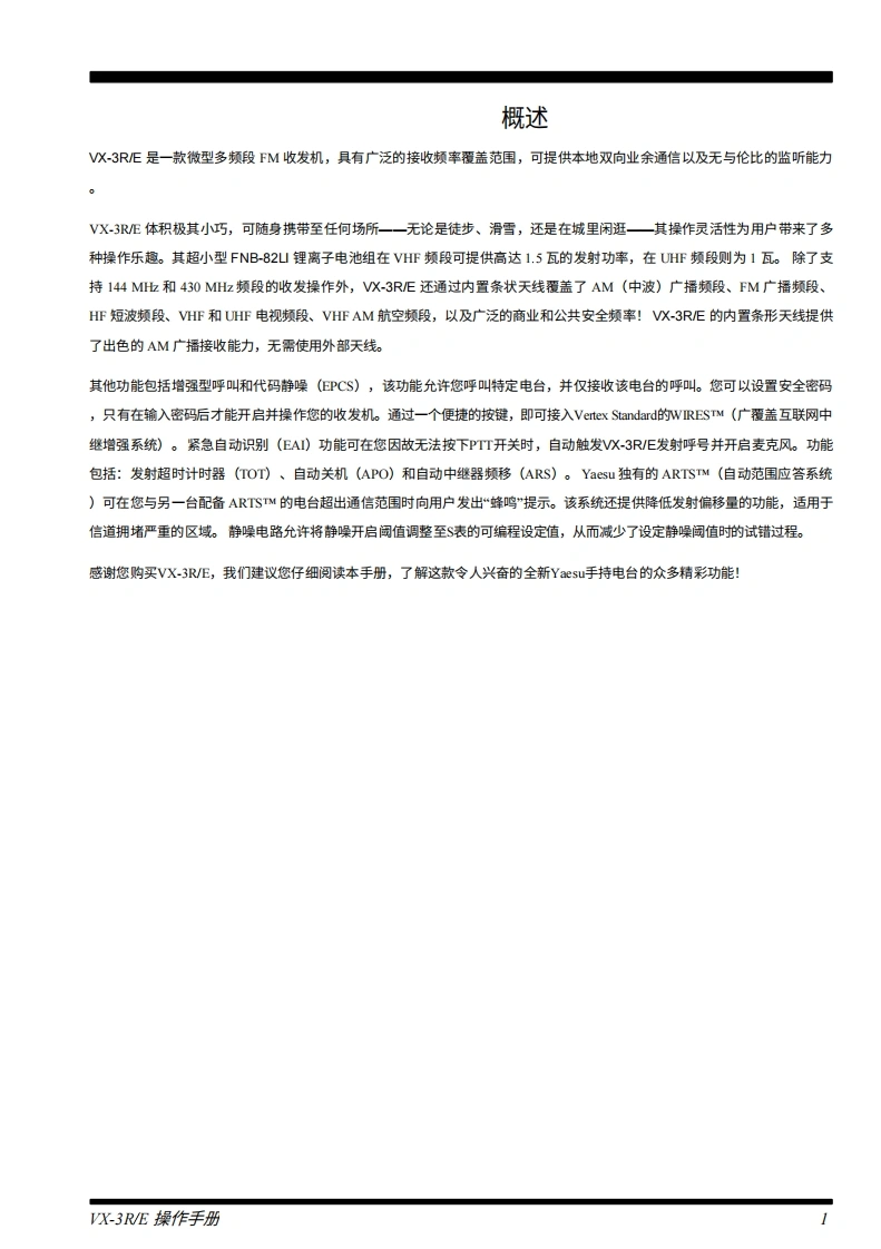 YAESUThe radioVHF/UHF超紧凑型双频段收发机,具备宽频覆盖VX-3R/E操作手册YAESUCHD130880FM AIEEROBBEC■OND DNSTEPMODEBAND TXPO V/MDWvoL八重洲无线电株式会社天王洲帕克赛德大夏140000日本东京品川区东品川25YAESU USA美国加利湘尼亚州赛著型斯市菲利斯大道6125号,编0530SUB.RRADIO ANT八重洲英国国汉遇彻斯特纳你克洛斯太阳谷商业圆12单元。编S0230BFM TRANSCEIVER VX-3