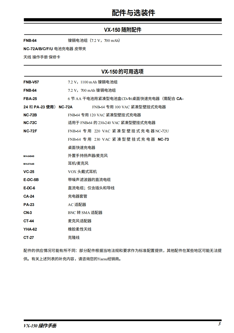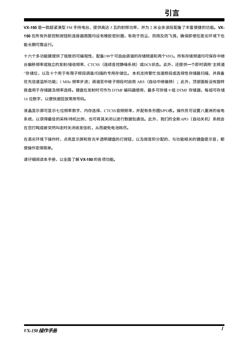 S/ereX5 tandardVHF FM TRANSCEIVER-150操作手册龙rtE3272必八重洲无线电株式会社日本东京都目黑区中目黑4-8-8,邮编153-8644YAESU U.S.A关国加利福尼亚州塞里托斯市爱德华兹路17210号,邮编90703YAESU EUROPE B.V.160P.O.Box 75525 1118 ZN,Schiphol,The NetherlandsYAESU UK LTD爱蜀英国汉普都温彻斯特温纳尔克洛斯太阳谷商业园12单元,邮编S0230LBYAESU GERMANY GmbHAm Kronberger Hang 2,D-65824 Schwalbach,GemmanyYAESU HK LTD香港九龙尖沙咀东莫迪道6号尖沙咀中心11楼
