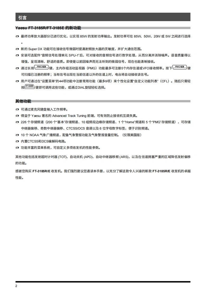 Yaesu_FT-3185R_用户使用操作说明书手册-中文找手册网13天前发布关注私信3.99MB62页036Yaesu_FT-3185R_用户使用操作说明书手册-中文此内容为付费资源,请付费后查看¥19¥21黄金会员免费钻石会员免费登录购买付费资源 第1页 / 共62页 第2页 / 共62页 第3页 / 共62页 第4页 / 共62页 第5页 / 共62页 第6页 / 共62页 第7页 / 共62页 第8页 / 共62页 第9页 / 共62页 第10页 / 共62页 试读已结束,还剩52页,您可下载完整版后进行离线阅读 THE END八重洲 文本预览 YAESURadio for ProfessionalsVHF FM收发机FT-3185RFT-3185E操作手册S:DX0."6.S2☑HIGH 查看更多 收起部分 喜欢就支持一下吧收藏