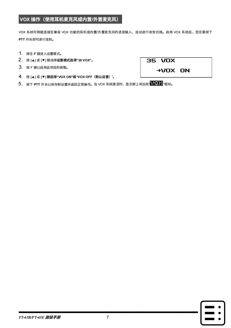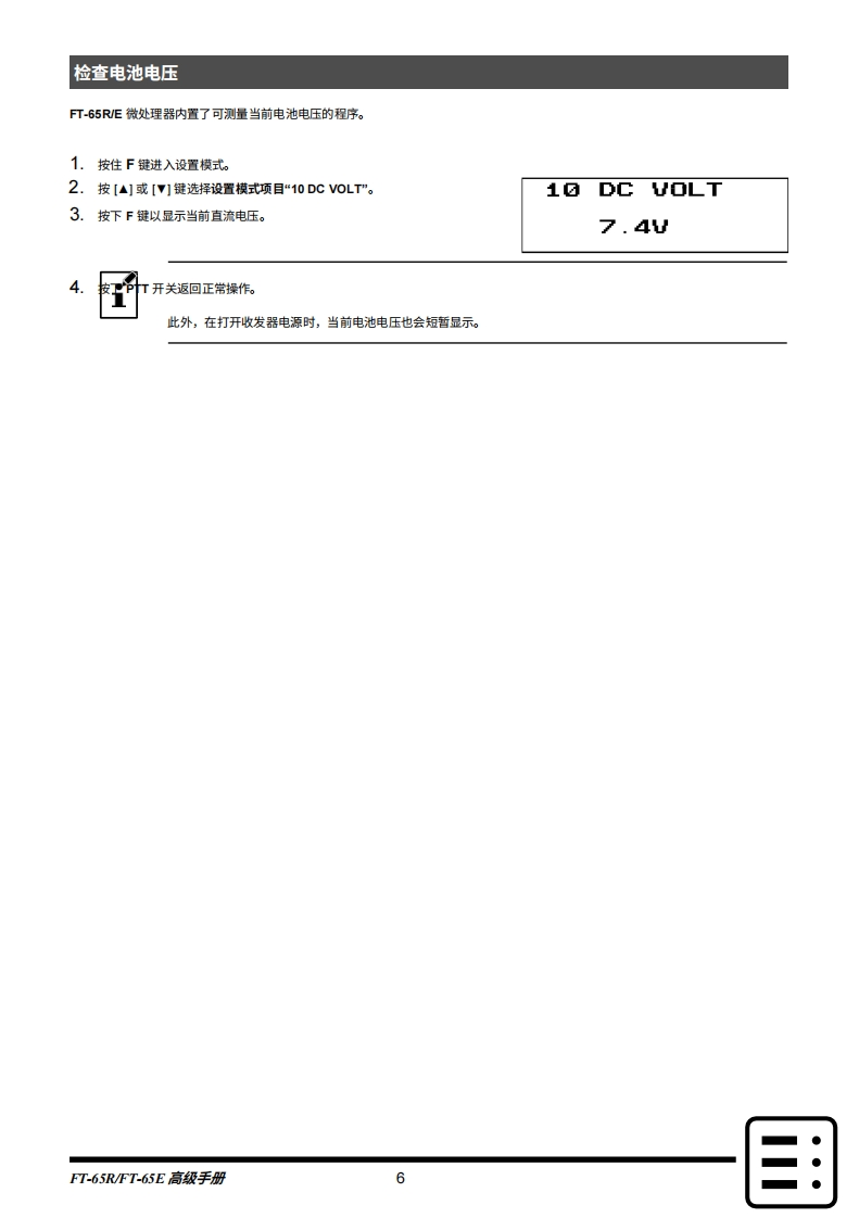 Yaesu_FT-65R_用户使用操作说明书手册_ENGpdf-中文找手册网13天前发布关注私信1.51MB40页034Yaesu_FT-65R_用户使用操作说明书手册_ENGpdf-中文此内容为付费资源,请付费后查看¥19¥21黄金会员免费钻石会员免费登录购买付费资源 第1页 / 共40页 第2页 / 共40页 第3页 / 共40页 第4页 / 共40页 第5页 / 共40页 第6页 / 共40页 第7页 / 共40页 第8页 / 共40页 第9页 / 共40页 第10页 / 共40页 试读已结束,还剩30页,您可下载完整版后进行离线阅读 THE END八重洲 文本预览 YAESU厂●,c7o144/430MHz双频收发机FT-65RFT-65E进阶手册YA⑦SCIDUAL BAND TRANSCEIVERFT-65446.500■■■■■■P1P3P41v12ABC3DEF4GHI5JKL6MNO7PORS9wxYZ米VIMOSET#BAND点击(轻触)国,即可随时返回目录页。 查看更多 收起部分 喜欢就支持一下吧收藏