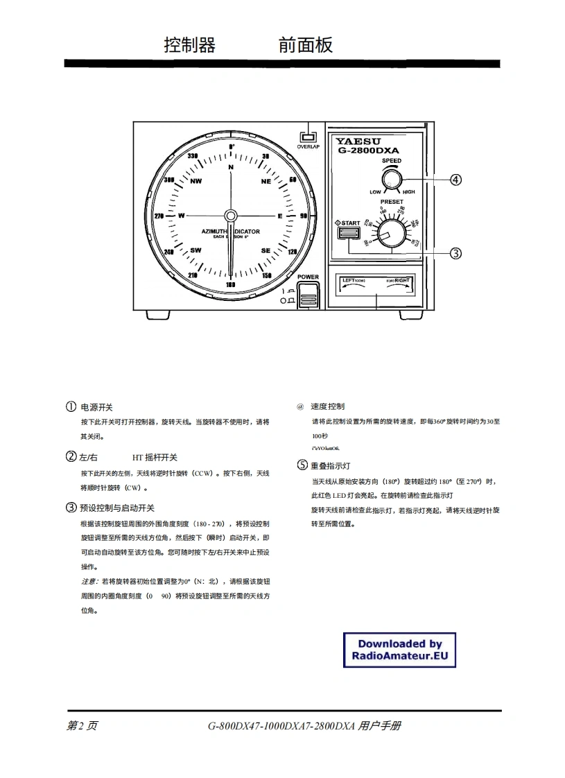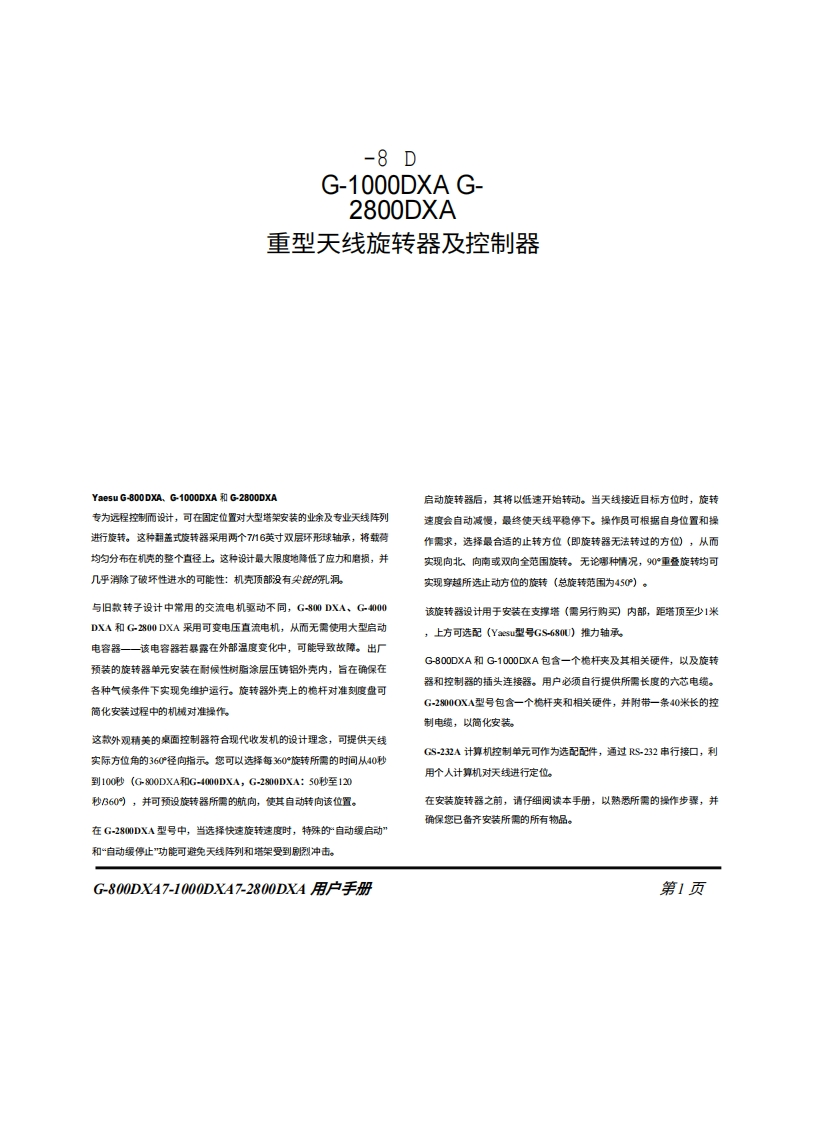 YAESUG-800DXAG-1000DXAG-2800DXA天线旋转器及控制器用户手册VERTEA STANDARD CO.,LTD.日本东京都目黑区名目木场4B8,却编15双6VERTEX STANDARDB350 NW.2nd Termce,Sune Z0,T.Niam i,FL 33466,ULS A.YAESU EUROPE B.V,邮微信前7525,T1182JG2年ndl,得兰YAESU UK LTD.Un h 12,Sun Vakey Business Purk,WindfillCkese,Winchester,Hampshin,GO23 OLB UG YAESU GERMANY GmbH阿姆网隆贝格街?号,08824施瓦尔巴精,德回Downloaded byYAESU HK LTD.RadioAmateur.EU香港九龙尖沙咀诺提路6的号1楼