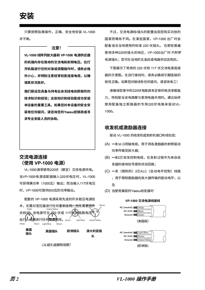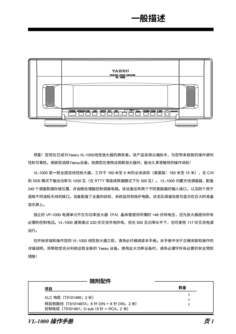 YAESUVL-1000操作手册VERTEX STANDARD CO.,LTD日本东京都目黑区中目黑4-8-8,邹编153-8644VERTEX STANDARD U.S.A.Inc.美国加味利福尼亚州赛普里所市菲利所大道6125号,邹编90630YAESU UK LTD英国汉普郡温彻所特温钠你克洛所太阳谷商业园12单元,邮编】S023 0LBVERTEX STANDARD HK LTD.香港九龙观塘观塘道378号千禧城2座13楼13061308室VERTEX STANDARD(AUSTRALIA)PTY.,LTD.维多利亚州东伯伍德韦所利苑10号塔利霍商业园,邮编3151