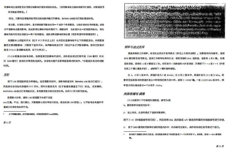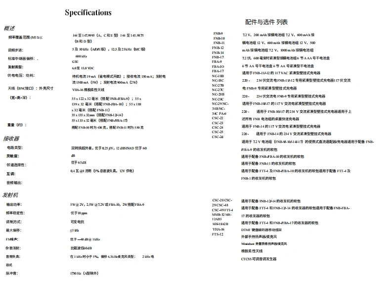 业余目录?无线电名录FT-23R规格2概述2操作手册接收器2发射器2配件与选件清单3控制装置与连接器4顶部面板4侧面版与前面版5配件>电池组电池盒及充电程>NC295小时快速充电程PA6便携式直话配/充电器话用于B-乐、10.-4及NB-I7干电池)电池析却与更操9MH.12Aa及MH18AB扬声器质克凤天线注意事项10操作1131初步运营信息i静噪设置li发射12频率与步进选择13存储与调用13重复器操作14非标准中说幕分路扫描15优先频道蓝听16音规静城操作17出现问题时18充分利用电池19YAESV NVSEX有限公司内存克隆20CD0.B0如,东该,本选配安装21YAESU U.S.A.FT3.12音调静噪单元安装2117210 Edwards R,Cerritos,Caffornis 90701,U.S.A.如果未姿装T42如果已安装FT42TAE5V EUROPE B.Y.FTT4DTMF提盘安装25Snipweg 3.1118AA Schiphel,The Netberlaads