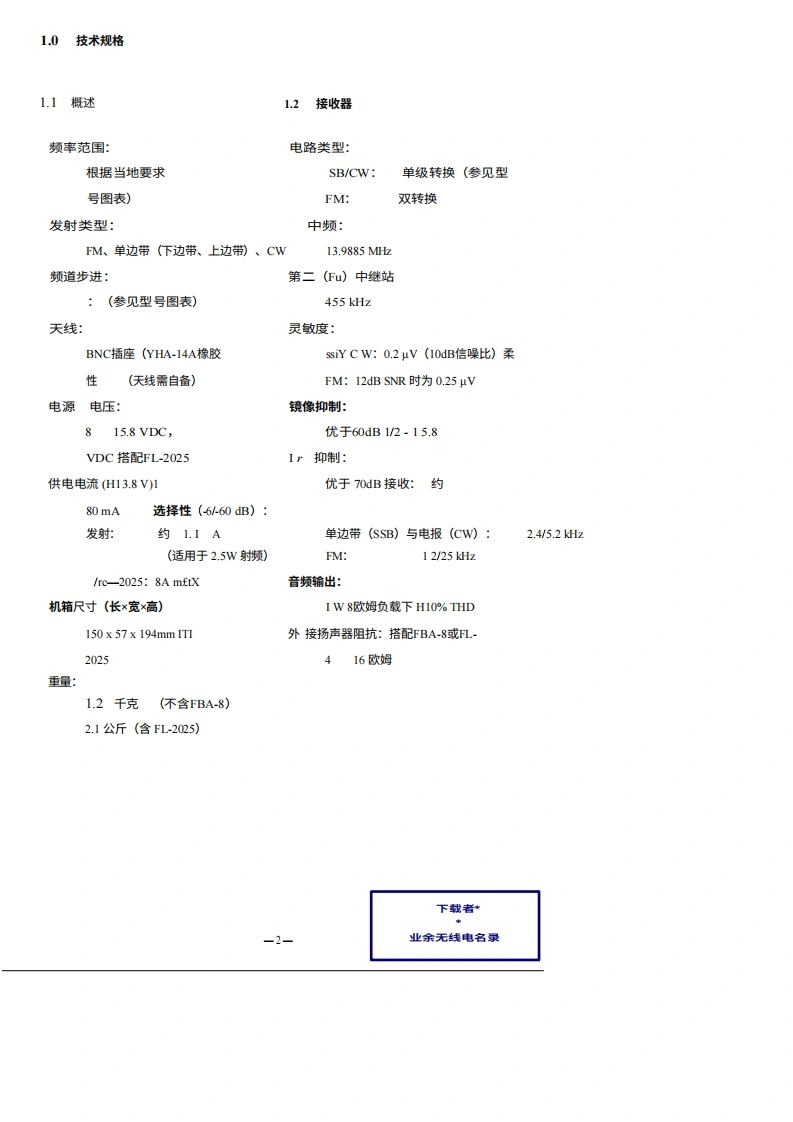 八重洲YAESU-FT-290R2_user操作说明书手册-中文找手册网12天前发布关注私信6.79MB46页030八重洲YAESU-FT-290R2_user操作说明书手册-中文此内容为付费资源,请付费后查看¥19¥21黄金会员免费钻石会员免费登录购买付费资源 第1页 / 共46页 第2页 / 共46页 第3页 / 共46页 第4页 / 共46页 第5页 / 共46页 第6页 / 共46页 第7页 / 共46页 第8页 / 共46页 第9页 / 共46页 第10页 / 共46页 试读已结束,还剩36页,您可下载完整版后进行离线阅读 THE END八重洲 文本预览 操作NG手册FT-290RRE¥299:M八重洲无线电株式会社C.P.0.B0X1500东京下载者,日本业余无线电名录 查看更多 收起部分 喜欢就支持一下吧收藏