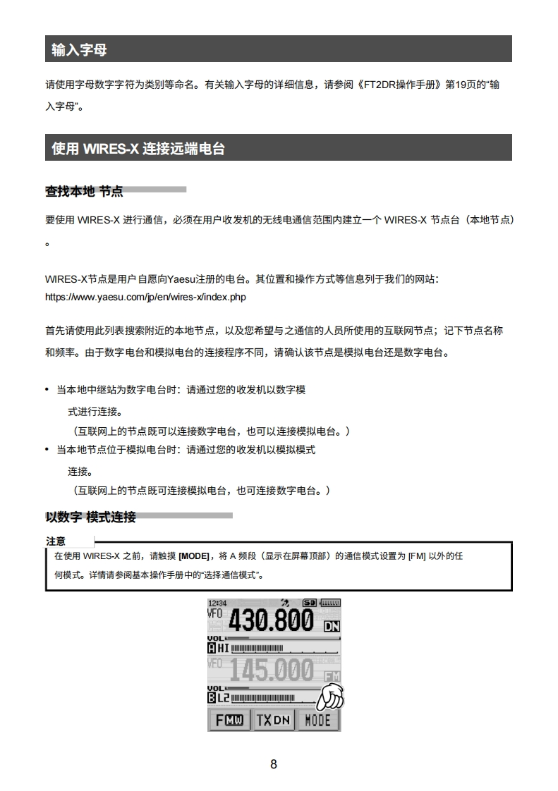八重洲YAESU-FT-2DR_Wires-X_Manual操作说明书手册-中文找手册网12天前发布关注私信7MB58页034八重洲YAESU-FT-2DR_Wires-X_Manual操作说明书手册-中文此内容为付费资源,请付费后查看¥19¥21黄金会员免费钻石会员免费登录购买付费资源 第1页 / 共58页 第2页 / 共58页 第3页 / 共58页 第4页 / 共58页 第5页 / 共58页 第6页 / 共58页 第7页 / 共58页 第8页 / 共58页 第9页 / 共58页 第10页 / 共58页 试读已结束,还剩48页,您可下载完整版后进行离线阅读 THE END八重洲 文本预览 YA西SJThe radio144/430MHz数字模拟收发机FT2DRC4FM/FM用户手册(NIRES-XH版感谢您购买这款Yaesu产品。本说明书介绍了与WIRES-X功能"相关的信息。有关收发机的基本操作信息,请参阅随附的FT2DR操作手册。本手册中的公司名称和产品均为各公司的商标或注册商标。 查看更多 收起部分 喜欢就支持一下吧收藏
