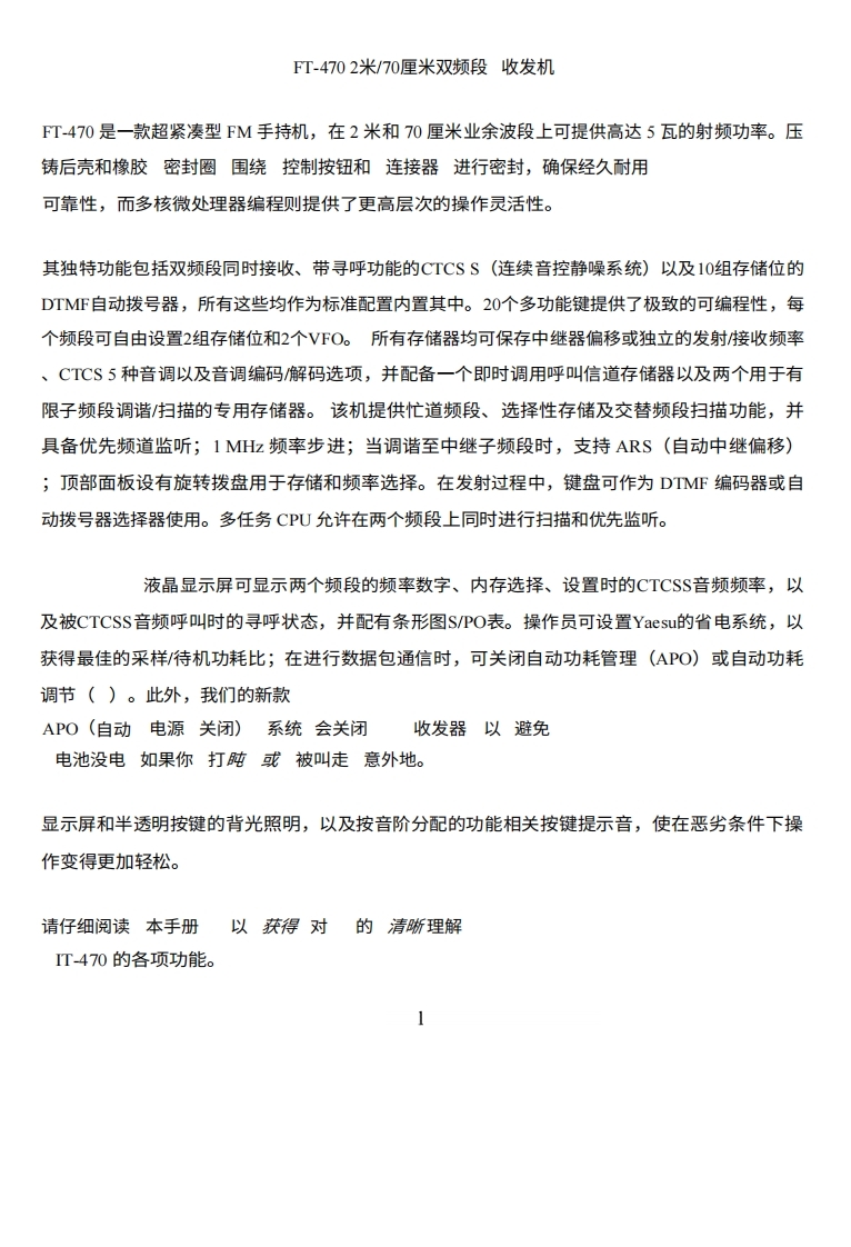 八重洲YAESU-FT-470_user操作说明书手册-中文找手册网12天前发布关注私信2.51MB37页022八重洲YAESU-FT-470_user操作说明书手册-中文此内容为付费资源,请付费后查看¥19¥21黄金会员免费钻石会员免费登录购买付费资源 第1页 / 共37页 第2页 / 共37页 第3页 / 共37页 第4页 / 共37页 第5页 / 共37页 第6页 / 共37页 第7页 / 共37页 第8页 / 共37页 第9页 / 共37页 第10页 / 共37页 试读已结束,还剩27页,您可下载完整版后进行离线阅读 THE END八重洲 文本预览 OPERATINGMANUALFT.470Downloaded byRadioAmateur.EUYAESUMUSEN CO.,LTD.邮政信箱is00日本东京 查看更多 收起部分 喜欢就支持一下吧收藏