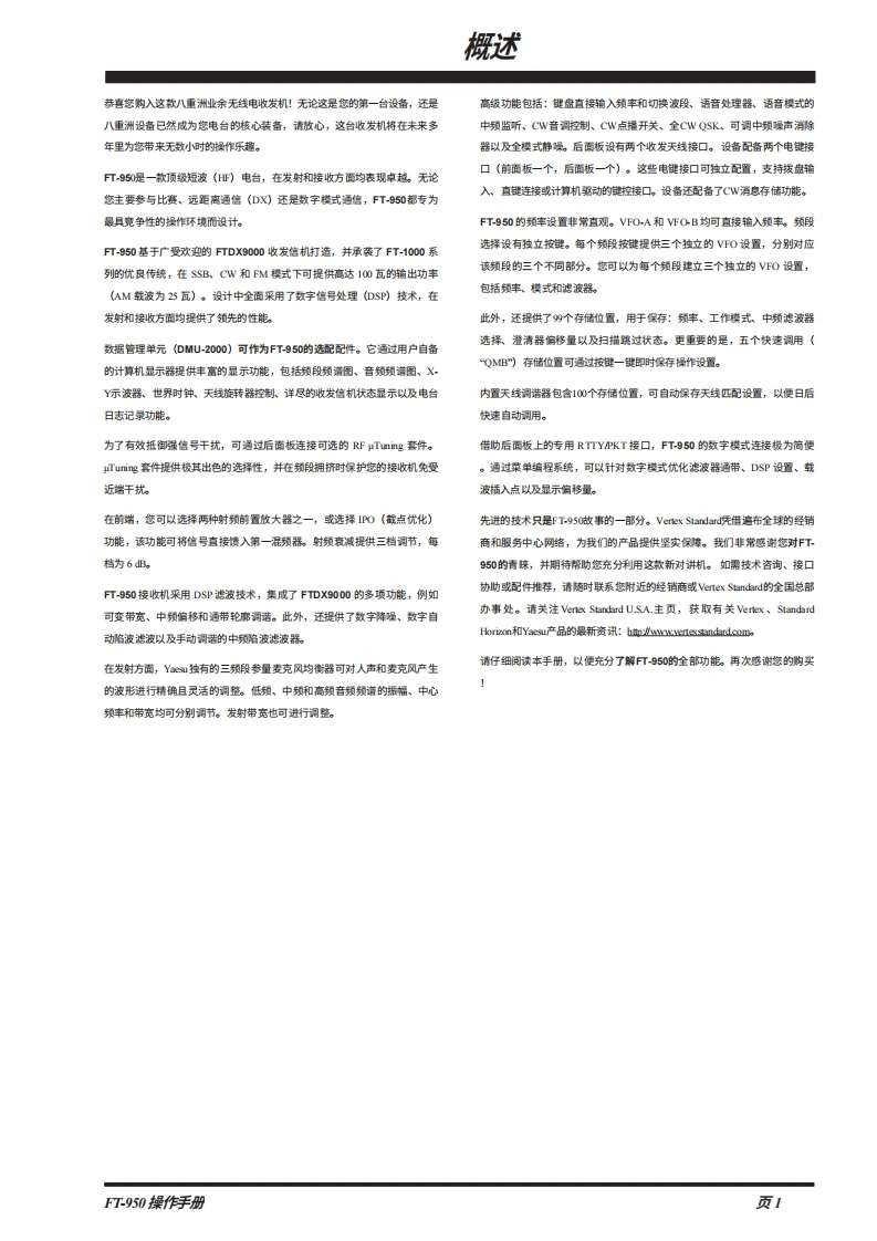 YAESUHF/50MHz收发机FT-950操作手册·.a巴8-49500■VERTEX STANDARD CO.,LTD.日本东京都目黑区中目黑4-8-8,却编153-8644VERTEX STANDARD关国总部美国加利福尼亚州赛普里斯市沃克街10900号,却编90630YAESU EUROPE B.V.P.0.Box75525,1118 ZN Schiphol,.荷兰YAESU UK LTD.英国汉普都裙彻斯特钠尔克洛斯太阳谷商业园12单元,邯编S0230LBVERTEX STANDARD HK LTD.香港九现塘海滨道139-141号海景中心20楼5室VERTEX STANDARD (AUSTRALIA)PTY.,LTD澳大利亚维多利哑州诺钉山3168诺漫比路45号14单元,诺曼此商业妇