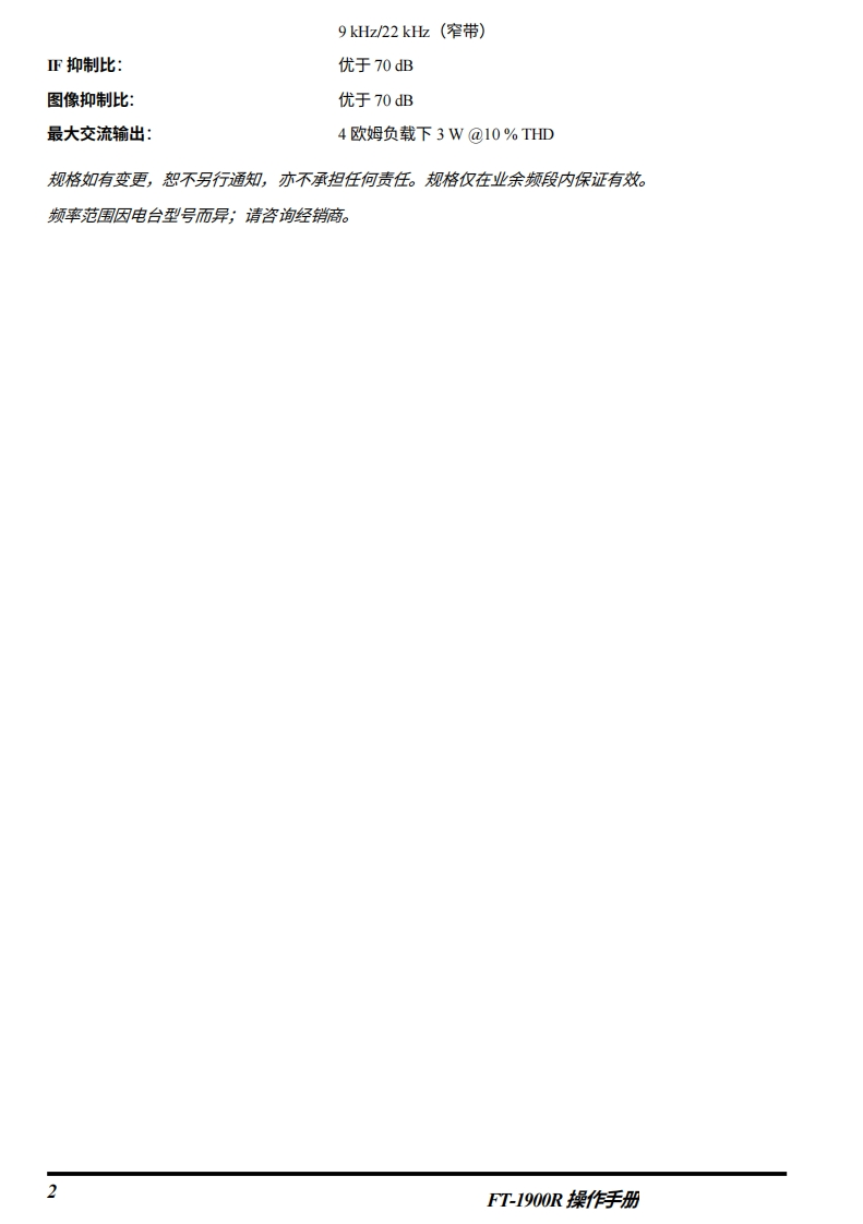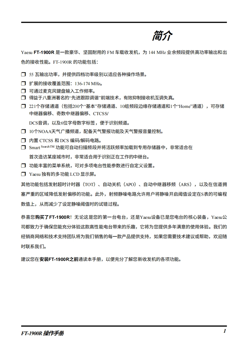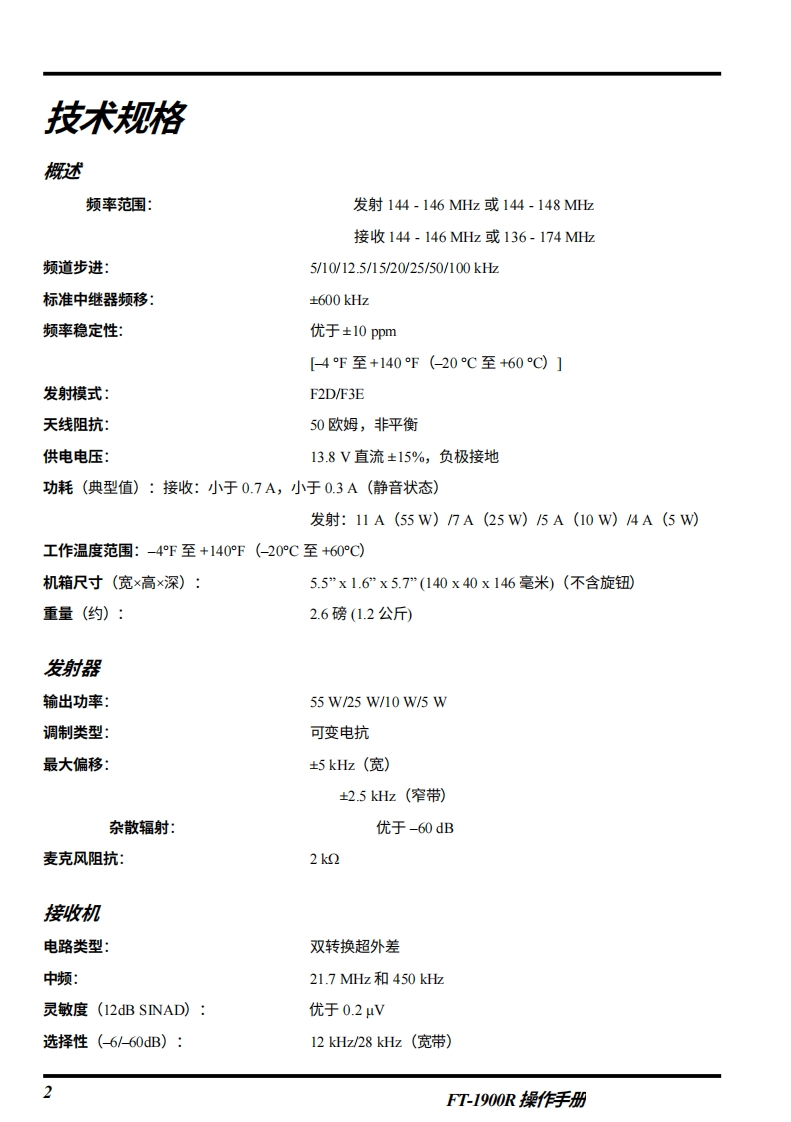 YAESU八重洲FT-1900R_操作说明书手册-中文版找手册网12天前发布关注私信3.89MB104页034YAESU八重洲FT-1900R_操作说明书手册-中文版此内容为付费资源,请付费后查看¥19¥21黄金会员免费钻石会员免费登录购买付费资源 第1页 / 共104页 第2页 / 共104页 第3页 / 共104页 第4页 / 共104页 第5页 / 共104页 第6页 / 共104页 第7页 / 共104页 第8页 / 共104页 第9页 / 共104页 第10页 / 共104页 试读已结束,还剩94页,您可下载完整版后进行离线阅读 THE END八重洲 文本预览 YAESUThe radioFM收发机FT-1900R操作手册阳合四品m155项7199八重洲无线电株式会社天王洲怕克赛德大厦140-0002日本东京都品川川区东品川2-58YAESU USA美国加利福尼亚州赛普里斯市菲利斯大道6125号,邮编90630八重洲英国英国汉普郡温彻斯特温纳尔克洛斯太阳谷商业园12单元,邮编S023OLB八重洲香港香港九龙观塘崇业街9号20楼2002室 查看更多 收起部分 喜欢就支持一下吧收藏