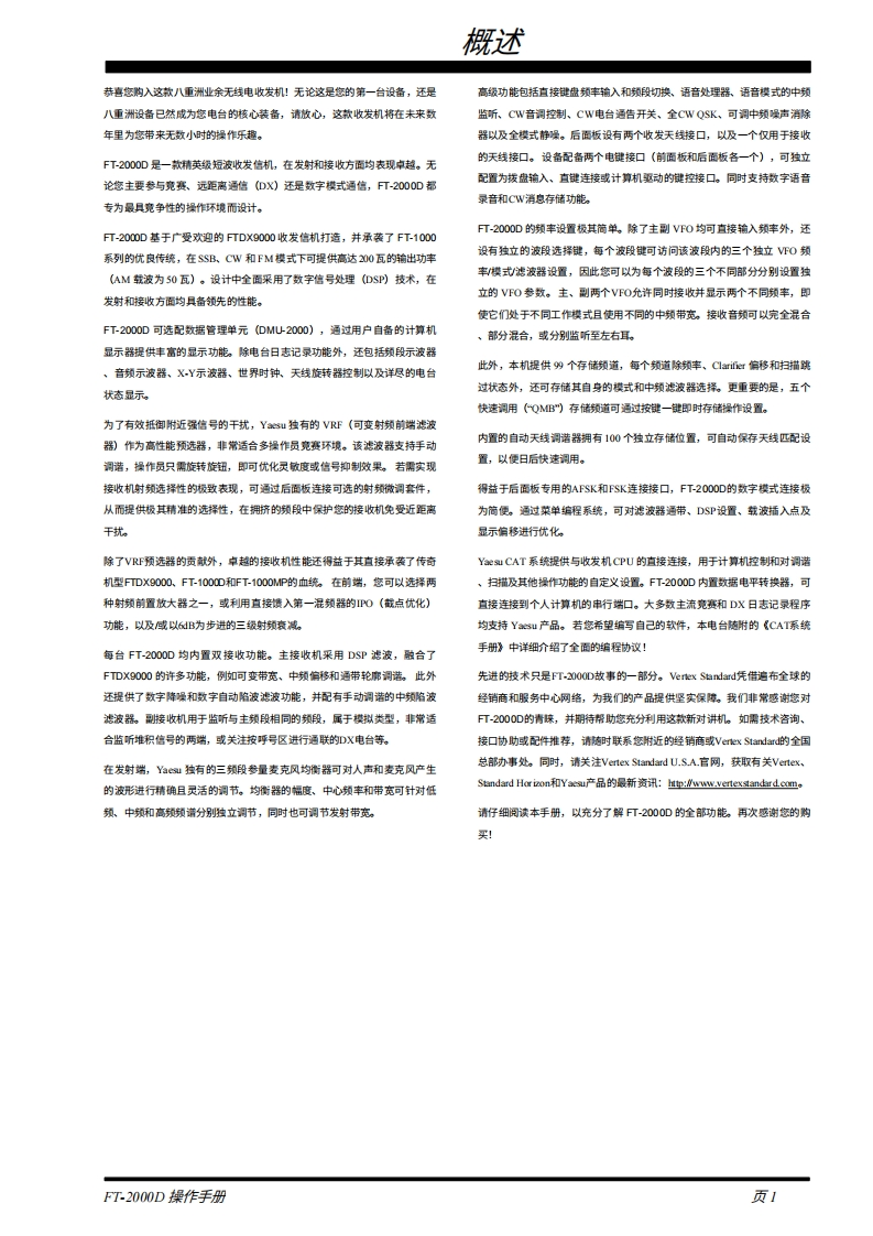 YAESUHF/50MHZ收发机FT-2000D操作手册-==7495.002000四o IDownloaded byRadioAmateur.EUVERTEX STANDARD CO..LTD.日本东京都目黑区中目黑4-88,邮编153-8644VERTEX STANDARD美国总部美国加利福尼亚州赛普里斯市沃克街10900号,却编g0630YAESU EUROPE B.V.P.0.Box75525,1118 ZN Schiphol,荷兰YAESU UK LTD.英国汉普都君彻斯特裙纳尔克洛斯太阳谷商业园2单元,邮编S0230LBVERTEX STANDARD HK LTD香港九观塘海滨道13粉141号海景中心20楼5室VERTEX STANDARD (AUSTRALIA)PTY.,LTD.澳大利亚维多利亚州储丁山368诺曼比路45号14单元,诺曼比商业园