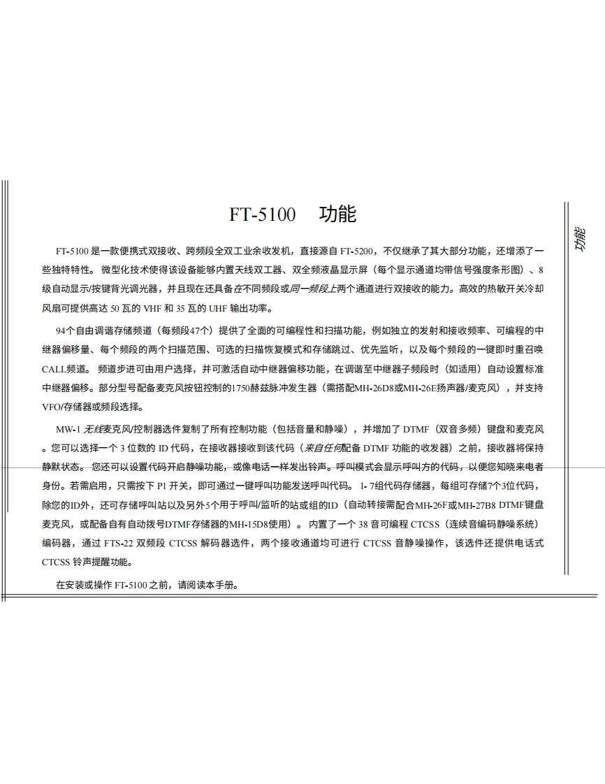 YAESU八重洲FT-5100_user操作说明书手册-中文版找手册网12天前发布关注私信4.69MB41页033YAESU八重洲FT-5100_user操作说明书手册-中文版此内容为付费资源,请付费后查看¥19¥21黄金会员免费钻石会员免费登录购买付费资源 第1页 / 共41页 第2页 / 共41页 第3页 / 共41页 第4页 / 共41页 第5页 / 共41页 第6页 / 共41页 第7页 / 共41页 第8页 / 共41页 第9页 / 共41页 第10页 / 共41页 试读已结束,还剩31页,您可下载完整版后进行离线阅读 THE END八重洲 文本预览 FT-5100Dual-Band 2m/70cmMobile TransceiverOC石TaYSG0015Downloaded byRadioAmateur.EU 查看更多 收起部分 喜欢就支持一下吧收藏
