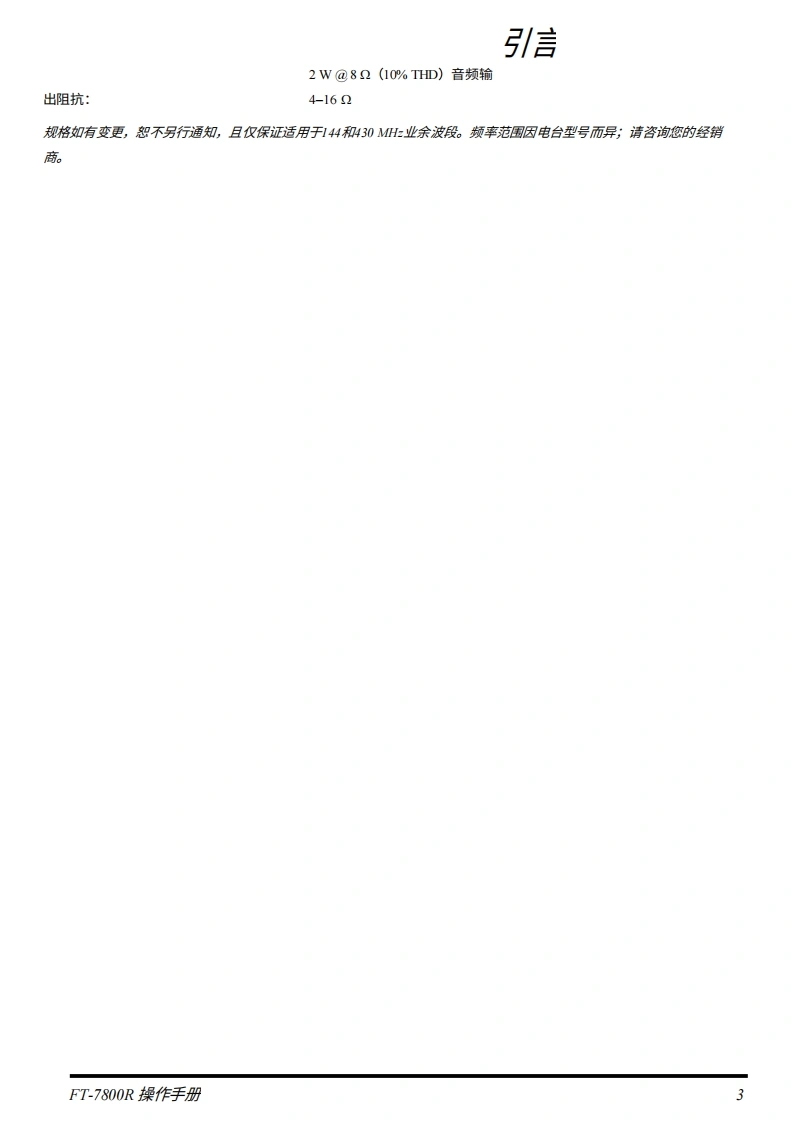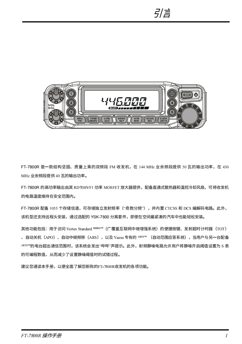 YAESU双频段FM收发机FT-7800R操作手册030ooo eoo otopo999ENC600083的盟盟出型品VERTEX STANDARD CO.,LTD.日本东京都目黑区中目黑4-8-8,邮编1538644VERTEX STANDARD关国总部关国加利福尼亚州赛普里斯市沃克街10900号,邮编90630YAESU EUROPE B.V.P.O.Box 75525,1118 ZN Schiphol,The NetherlandsYAESU UK LTD.英国汉普郡温彻斯特温纳尔克洛斯太阳谷商业园12单元,邮编S0230LBVERTEX STANDARD HK LTD.香港九龙观塘海滨道139-141号海景中心20楼5室