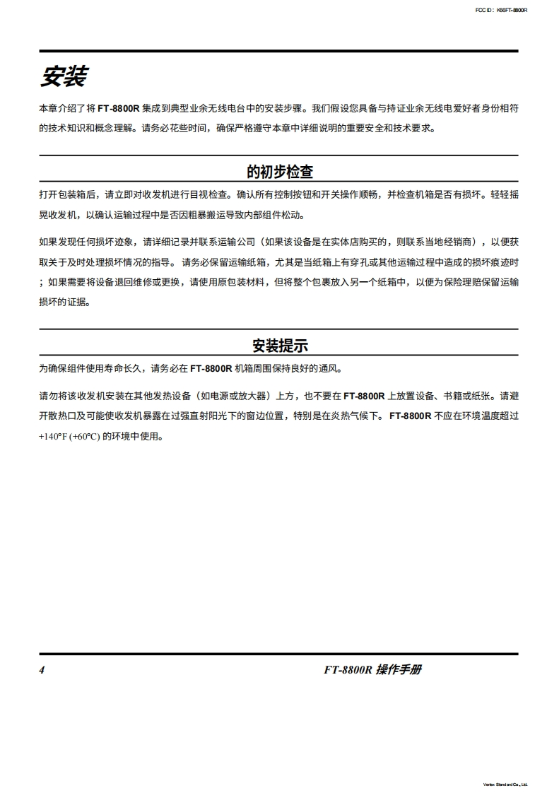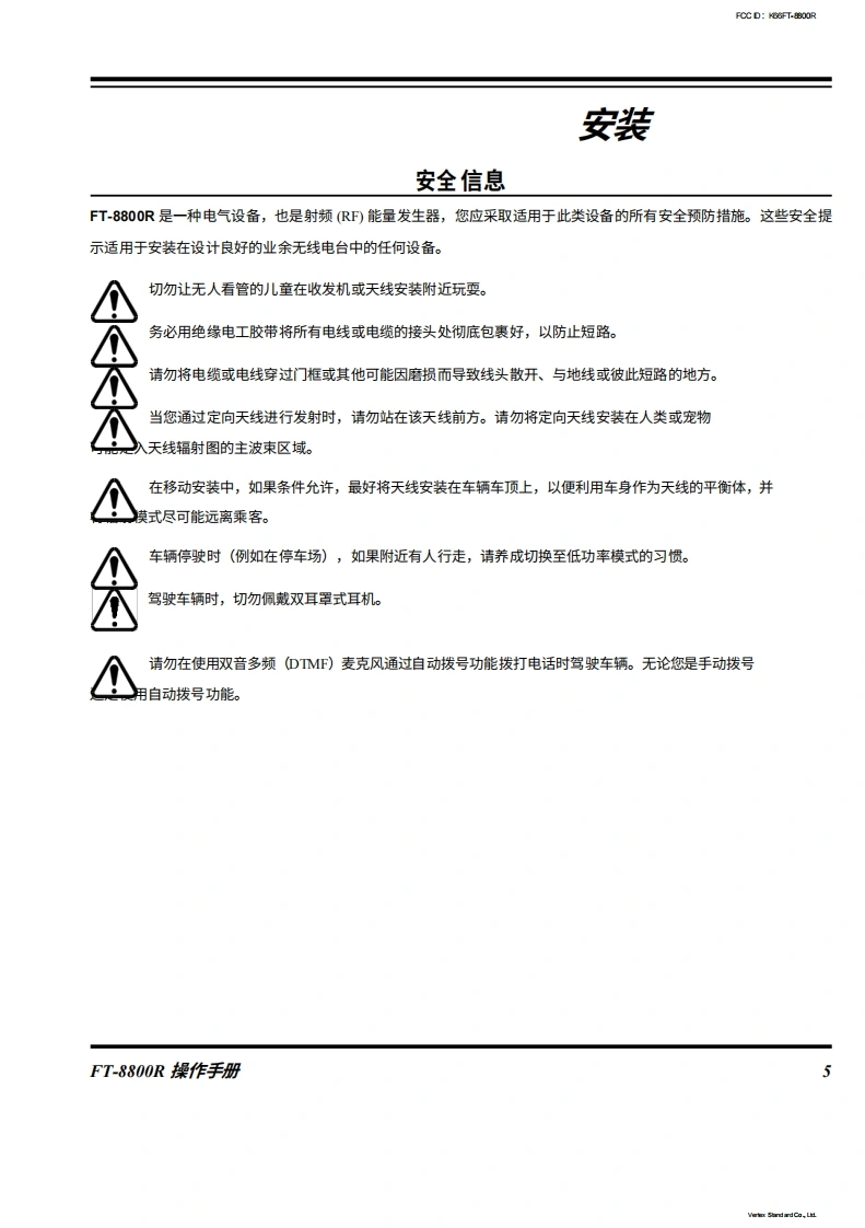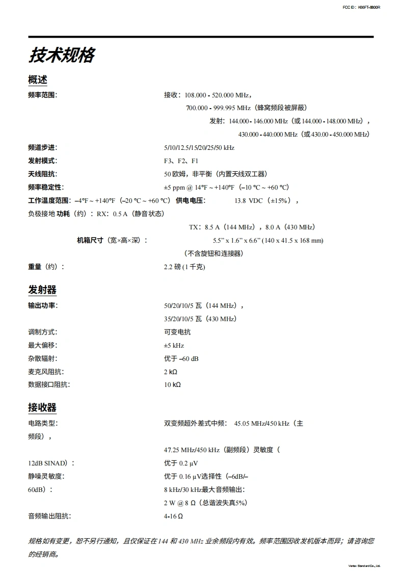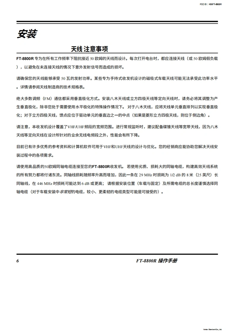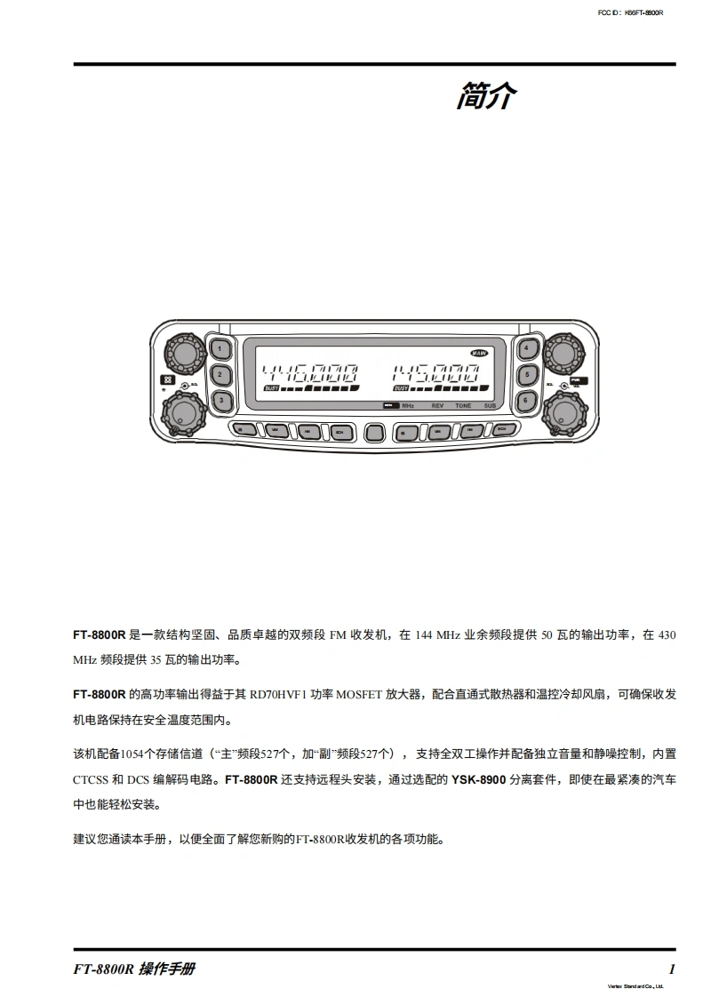 FCC ID:KB6FT8900RSYAESU双频段调频收发机FT-8800R操作手册。a00ooo O@o。●。oD⊙S800460G8VERTEX STANDARD CO.,LTD.日本东京都目黑区中目黑48-8,邮编153-8644VERTEX STANDARD美国总部关国加利福尼亚州赛普里斯市沃克街10900号,邮编90630国际事业部关国佛罗里达州迈阿密市西北52街8350号201室,邮编33166YAESU EUROPE B.V.P.O.Box 75525,1118 ZN Schiphol,The NetherlandsYAESU UK LTD.英国汉普都温彻斯特温纳尔克洛斯太阳谷商业园12单元,邮编:S0230LBVERTEX STANDARD HK LTD.香港九龙观塘海滨道139-141号海景中心20楼5室
