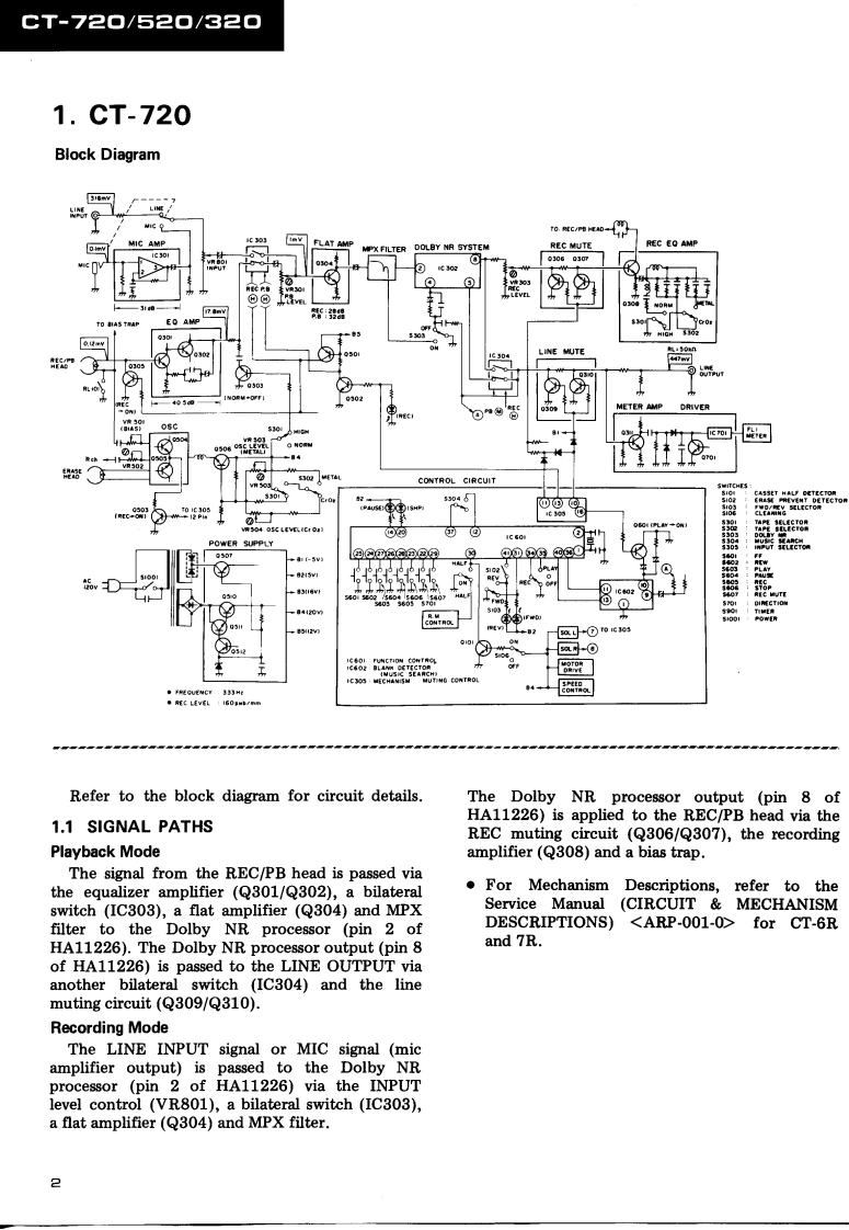 PIONEERServicec☑刀TanualCIRCUIT MECHANISMDESCRIPTIONS1!1ORDER NO.The photo shows the model CT-720.ARP-003-0STEREO CASSETTE TAPE DECK72O牙品This Service Manual should be used together with the Service Manual